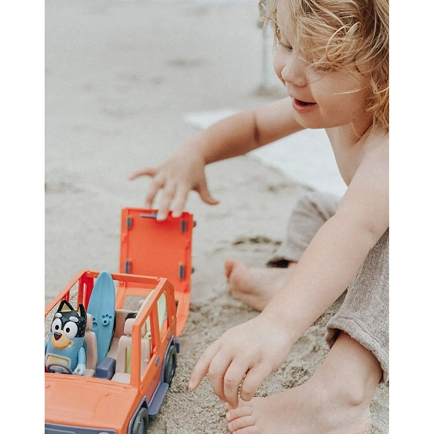 Tag med Bluey og familien på et eventyr i deres familiebil! Udforsk verden og lad fantasien sætte grænserne, mens I kører rundt i denne seje cruiser. Med to surfbrætter på taget er I klar til stranden eller andre spændende destinationer. Hvor mon rejsen går hen?