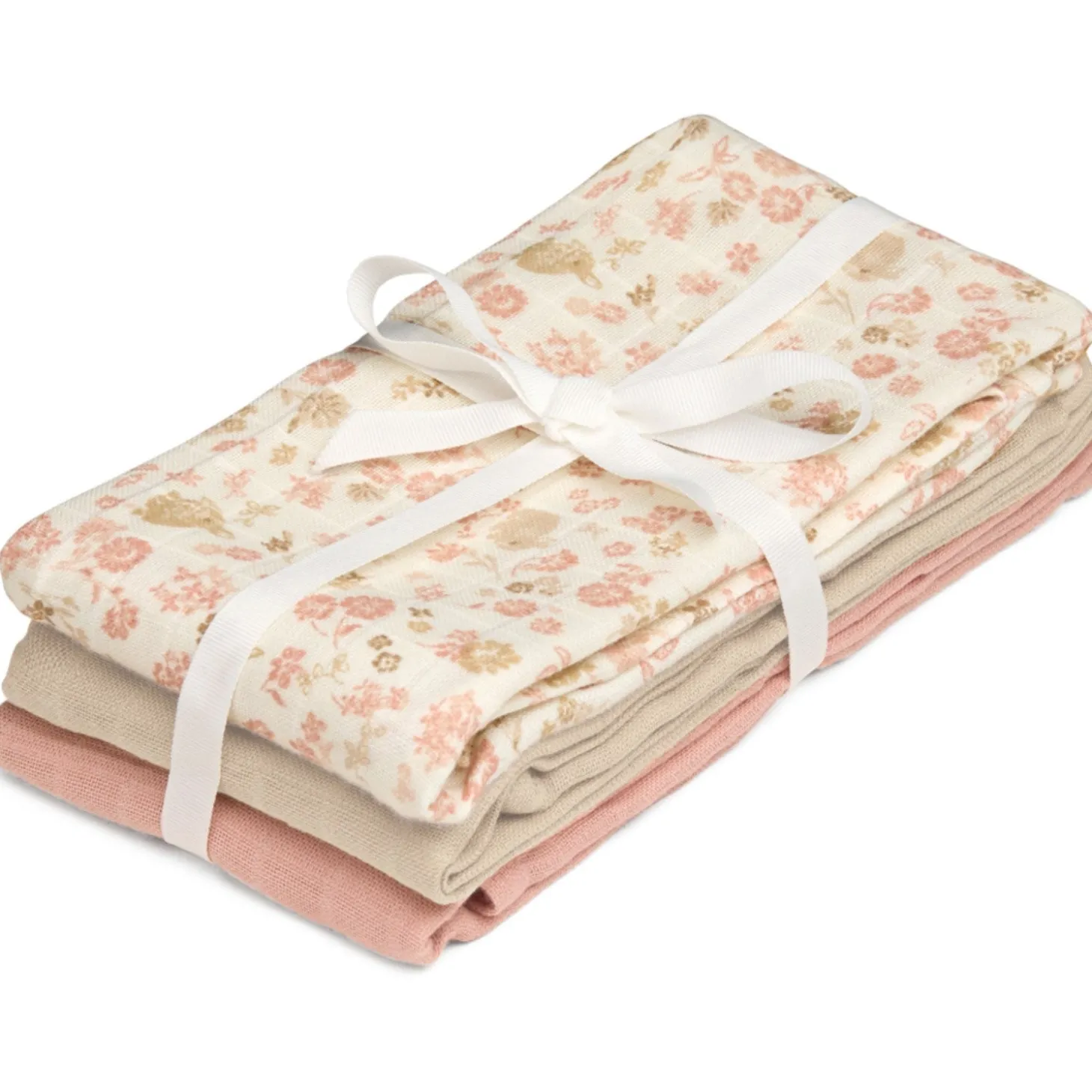 Denne 3-pak stofbleer er bundet sammen med en smuk grå sløjfe, hvilket gør dem til den perfekte gave til en nybagt forælder. Vælg mellem forskellige farvekombinationer for at finde det sæt, der bedst passer til dit barns stil og behov.