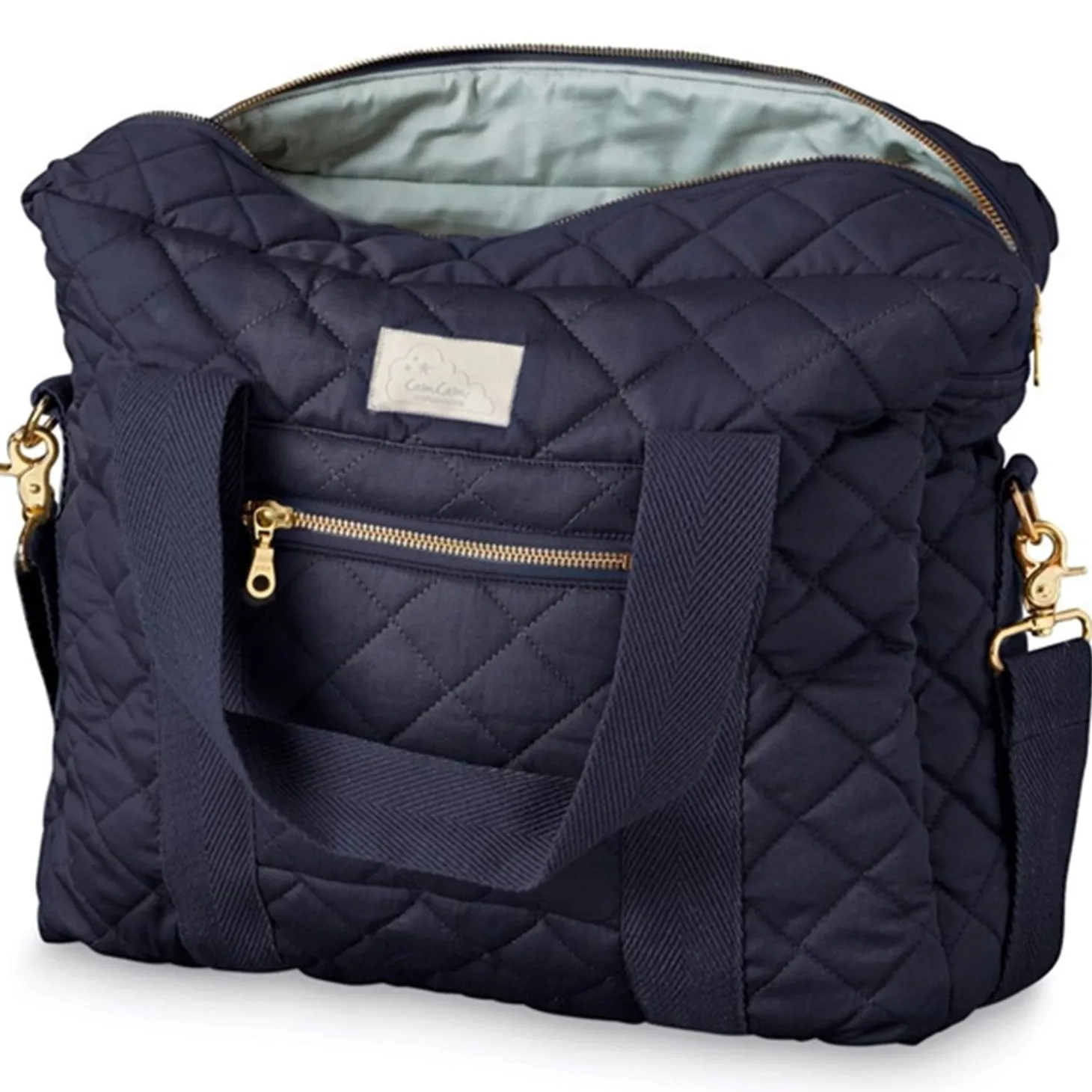 Opdag den stilfulde Cam Cam Copenhagen Pusletaske i den smukke farve New Navy. Denne kviltede pusletaske er designet med både en skulderstrop og en justerbar strop, som nemt kan fastgøres på barnevognen. Med en praktisk acryl-coating på indersiden, tilbyder denne taske en god beskyttelse mod hverdagens udfordringer.