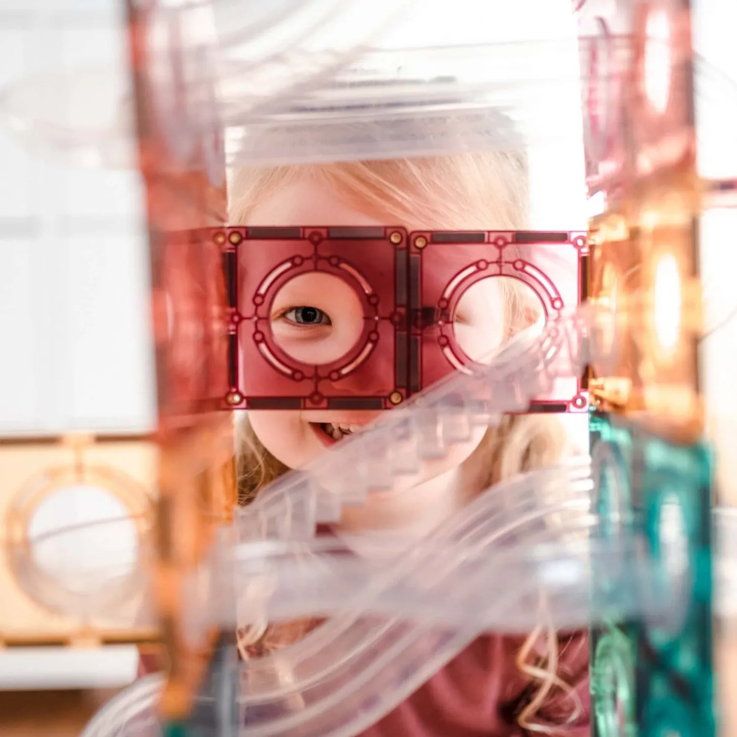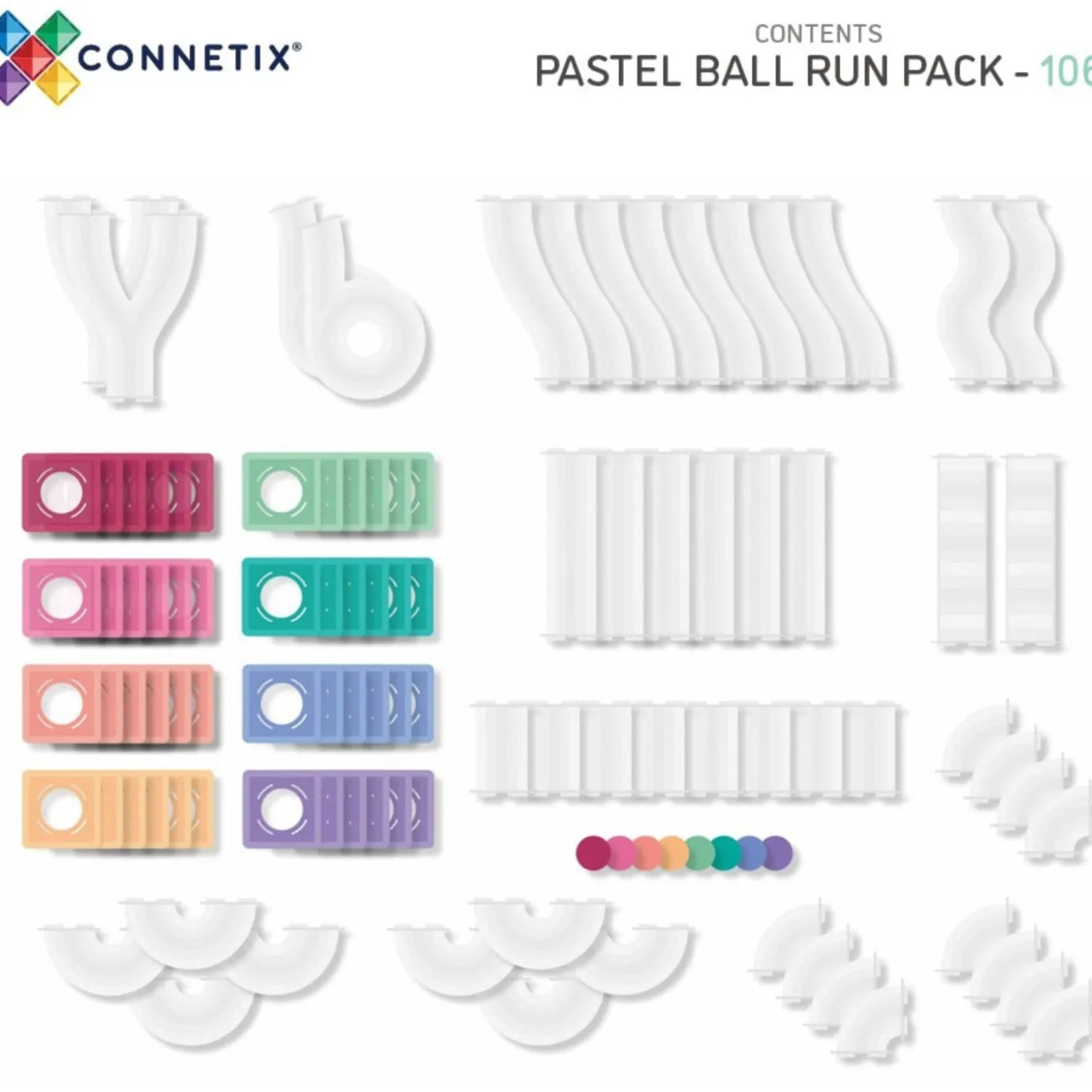 Dette sæt inkluderer alt, hvad dit barn har brug for til at skabe spændende boldbaner, herunder boldløb firkanter, bolde, splitrør, trapper, bøjningsrør, gliderør og meget mere. Lad legen begynde, og se dit barn udfolde deres kreativitet med Connetix Pastel Bold Run Pak 106 Styks.
