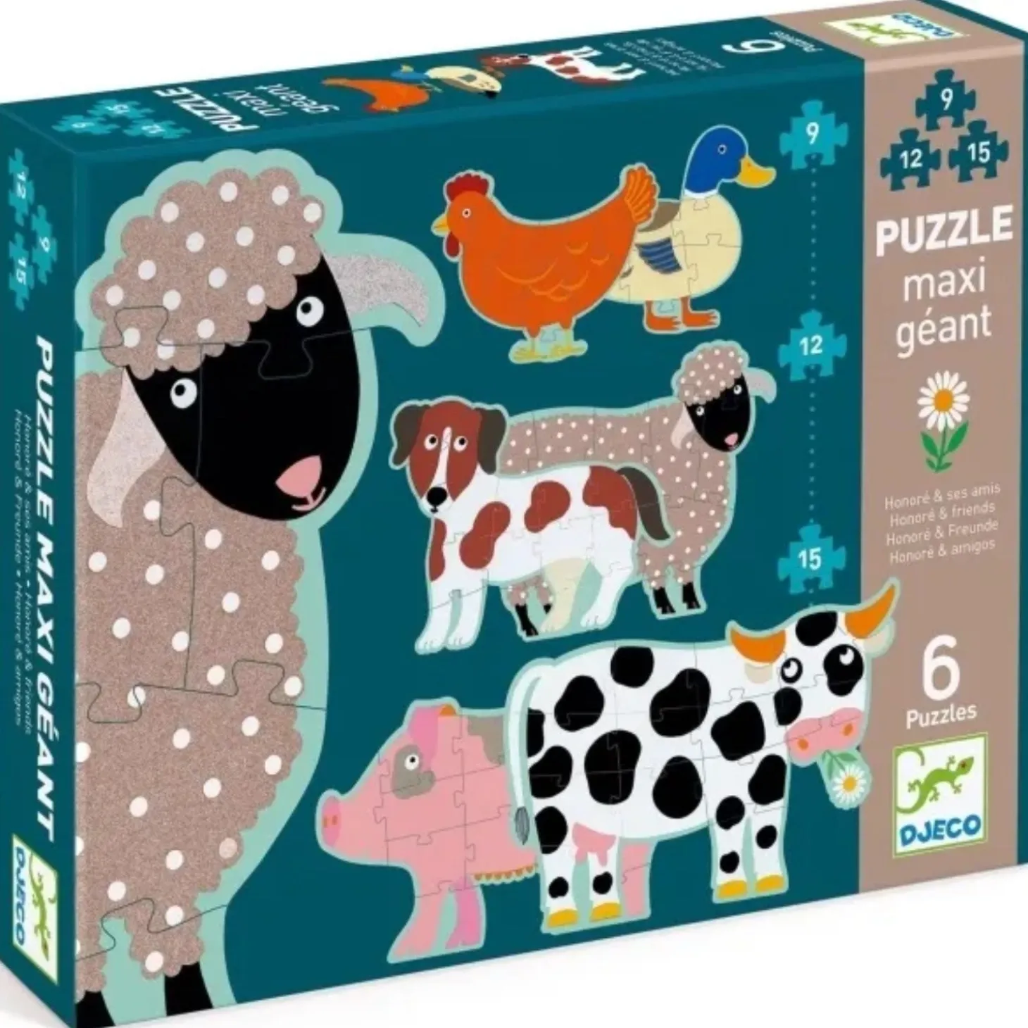Mød Djeco Honoré og hendes venner Puslespil – det perfekte valg til små børn, der elsker sjove og lærerige udfordringer. Dette charmerende gulvpuslespil består af seks forskellige puslespil med stigende sværhedsgrad, som hjælper med at udvikle børnenes problemløsning og finmotorik.