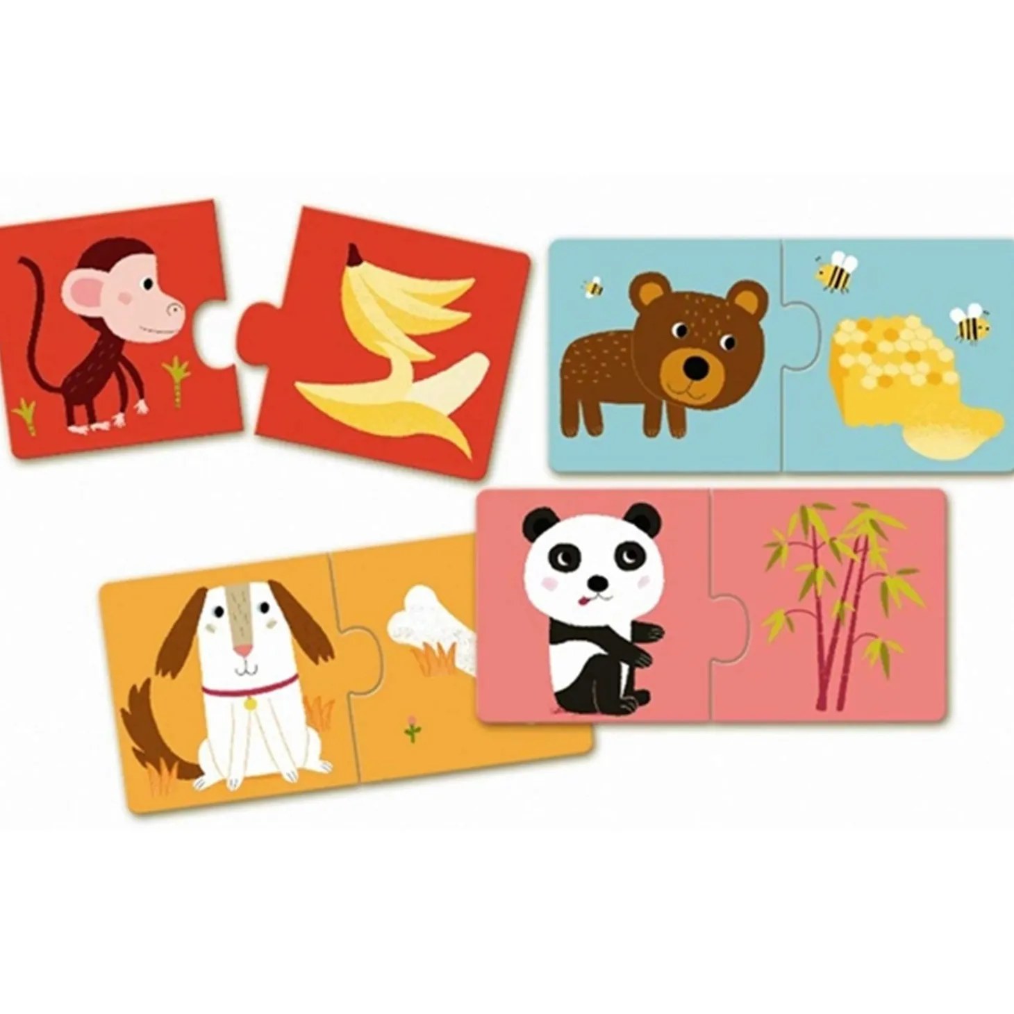 Oplev en sjov og lærerig aktivitet med Djeco Puslespil Hvem Spiser Hvad. Dette sæt består af 10 puslespil med 2 brikker hver, der viser et dyr og dets tilhørende mad. Børnene vil elske at matche dyrene med den rigtige mad, samtidig med at de lærer om forskellige dyrearter og deres kostvaner.