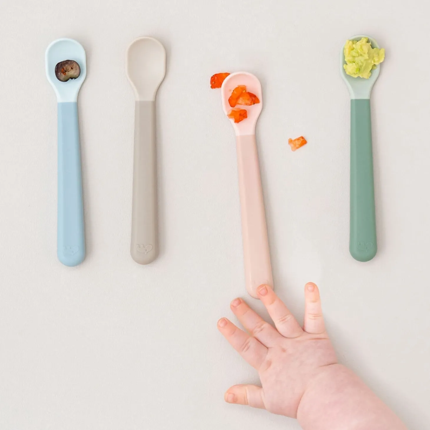 Opdag en ny måde at gøre måltider sjovere for din lille én med denne 3-pak af DonebyDeer Foodie Easy-Grip babyskeer i forfriskende grønne farver. De søde skeer er designet med et lille blad, perfekt til babyens første mundfuld, og har et skaft med blød easy-grip-belægning, der giver en stabil og behagelig greb for små hænder.