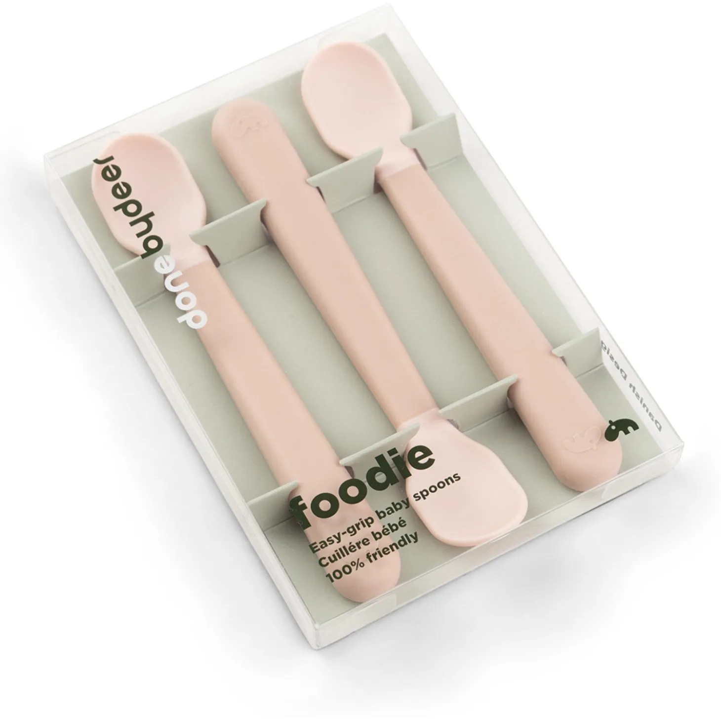 Med DonebyDeer Foodie Easy-Grip babyskeer i en elegant pudderfarve bliver måltidet en leg for din lille én. Disse skeer er designet specielt til små hænder med et ergonomisk greb, der sikrer et sikkert hold. Det lille skeblad er perfekt til de første smagsoplevelser, og de er nemme at rengøre i opvaskemaskinen.