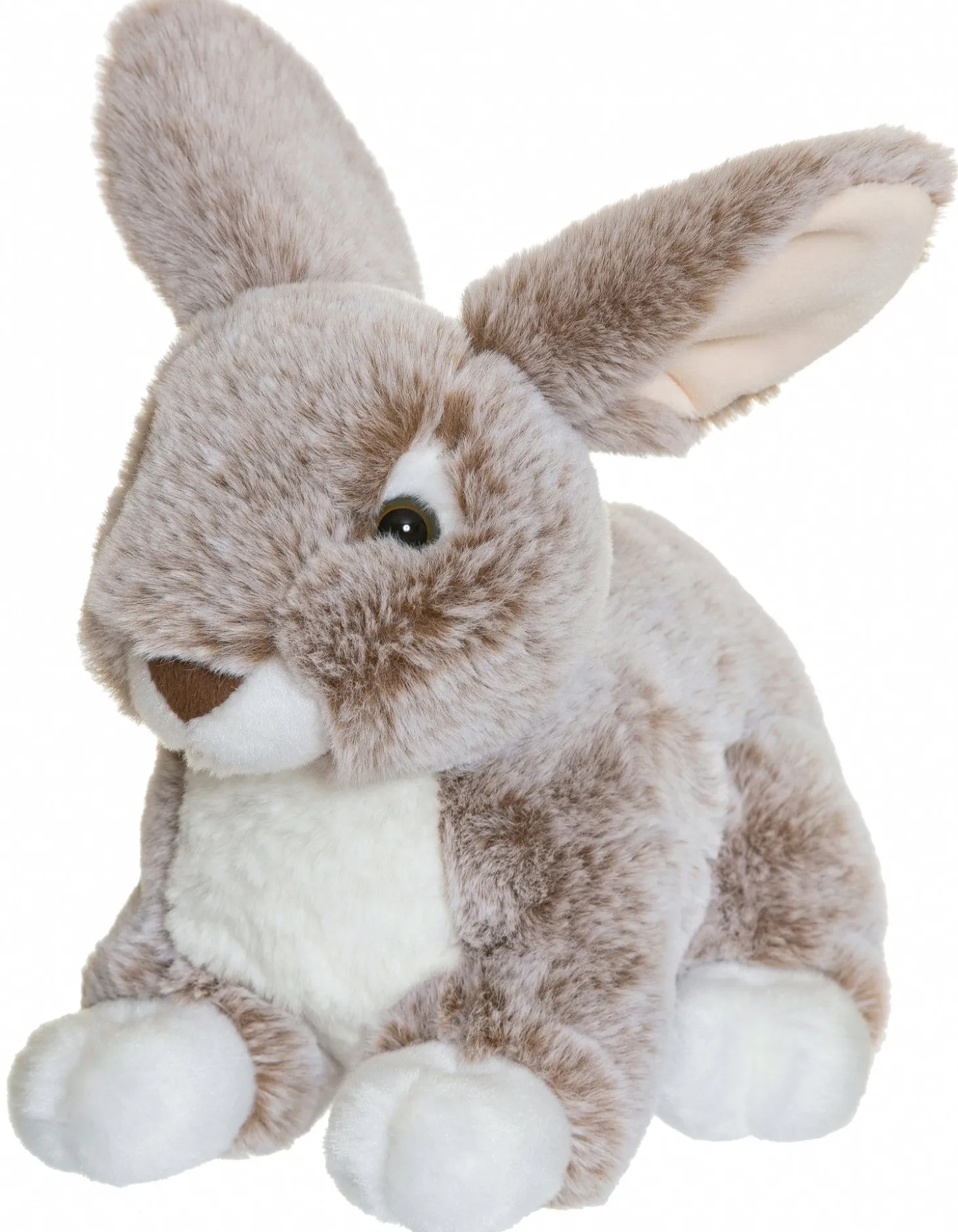 Denne kanin har en smuk meleret pels i brun og hvid, som giver et realistisk look.
