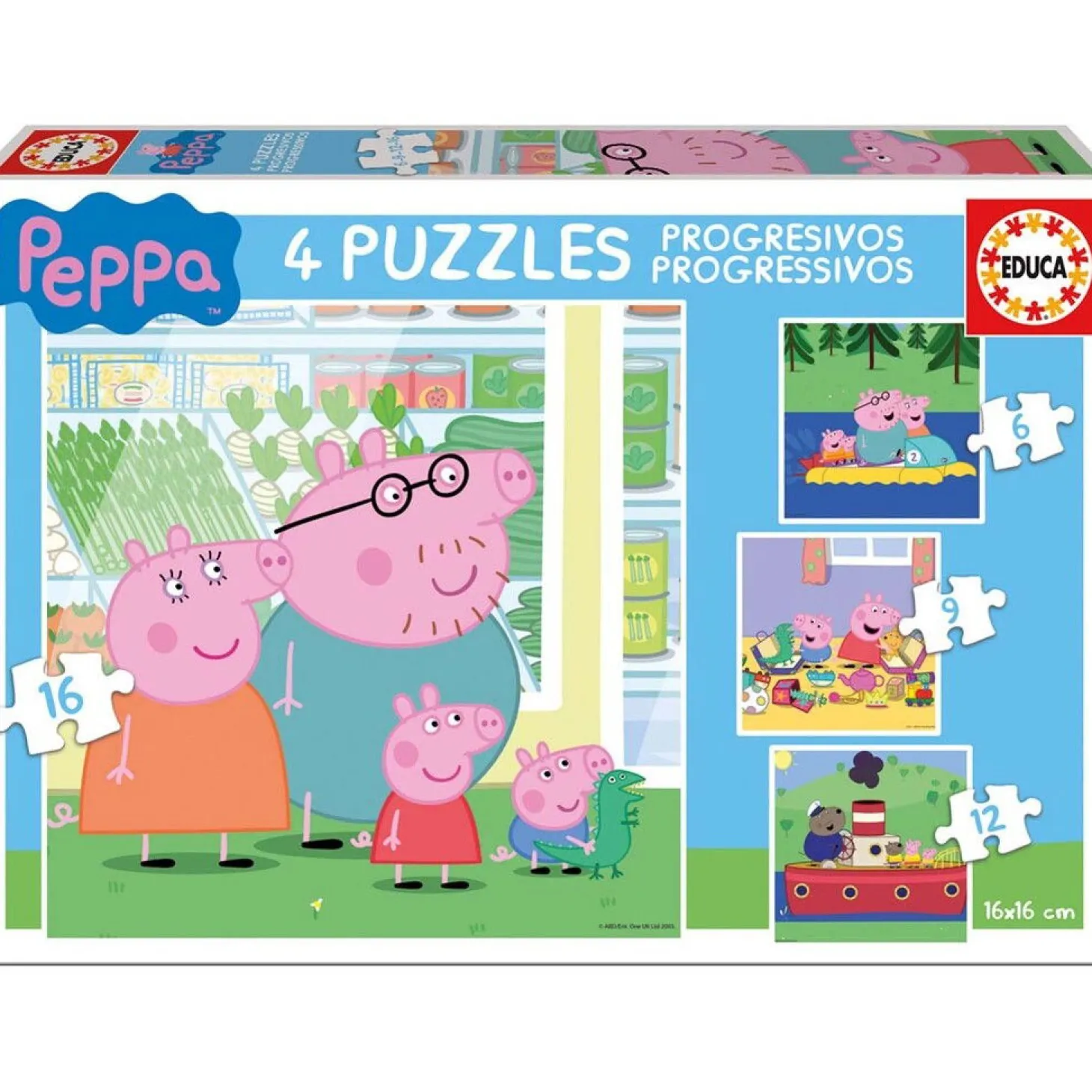 Sæt med 4 Gurli Gris puslespil i forskellige sværhedsgrader. 6, 9 ,12 eller 16 store brikker. Fra 3 år.
