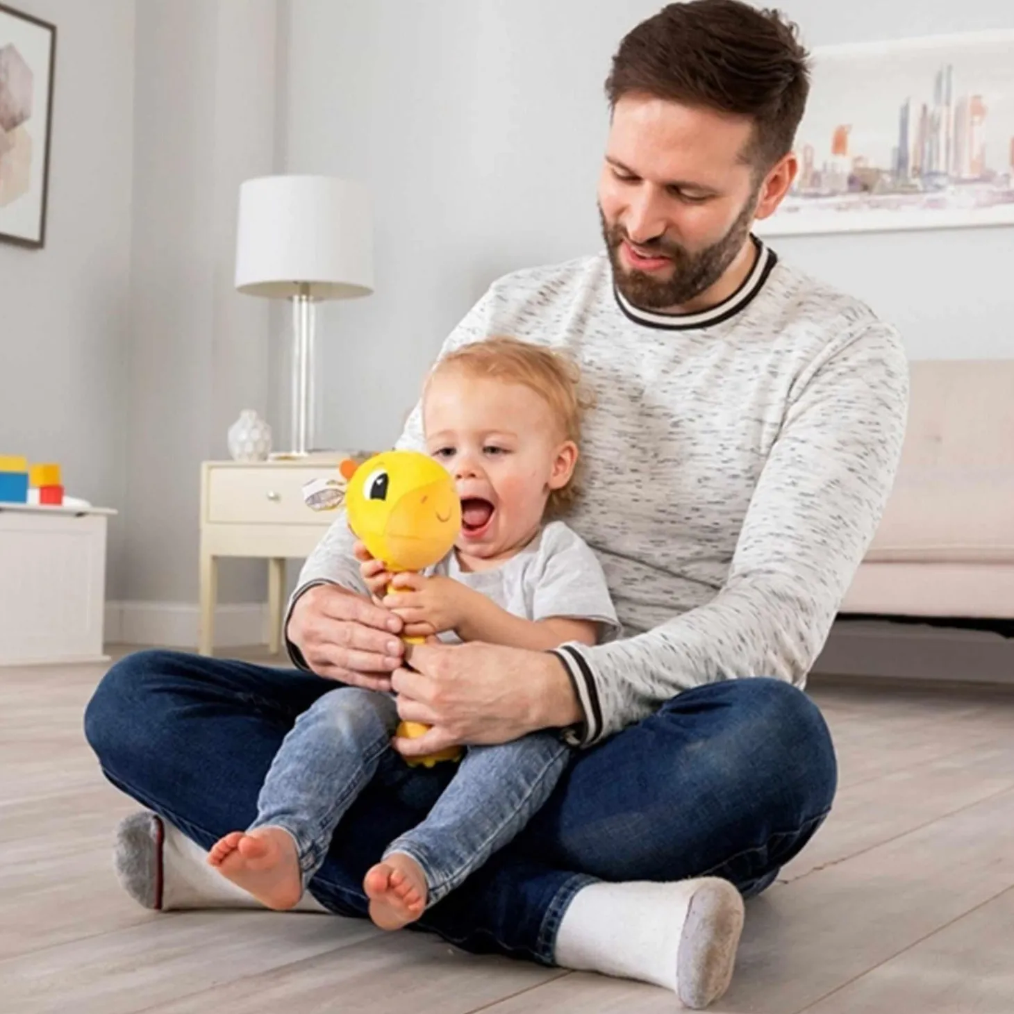 Lamaze Wacky Giraffen med lyd er det perfekte valg til at stimulere dit barns sanser og nysgerrighed. Med farverige detaljer, bløde materialer og sikre, afrundede kanter er dette aktivitetslegetøj designet til at fremme motorisk udvikling hos de yngste. Giraffen laver sjove lyde, når den bliver slået på, og det bløde hoved efterlader ingen mærker. Der er endda en “forældreknap”, hvis lydene bliver for overvældende. Egnet til børn fra 12 måneder og op.