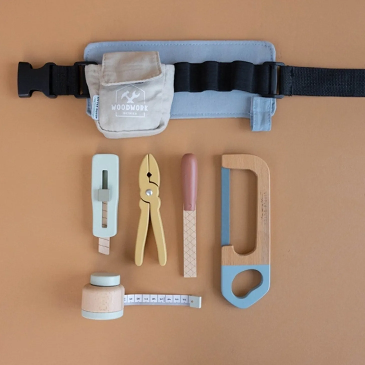 Det stilfulde værktøjsbælte er fremstillet af holdbart træ og har dimensioner på 28 x 16 x 8 cm, hvilket gør det ideelt til børn fra 3 år og opefter. Lad dem udforske og udvikle deres færdigheder, mens de leger og lærer med dette skønne legeværktøj.