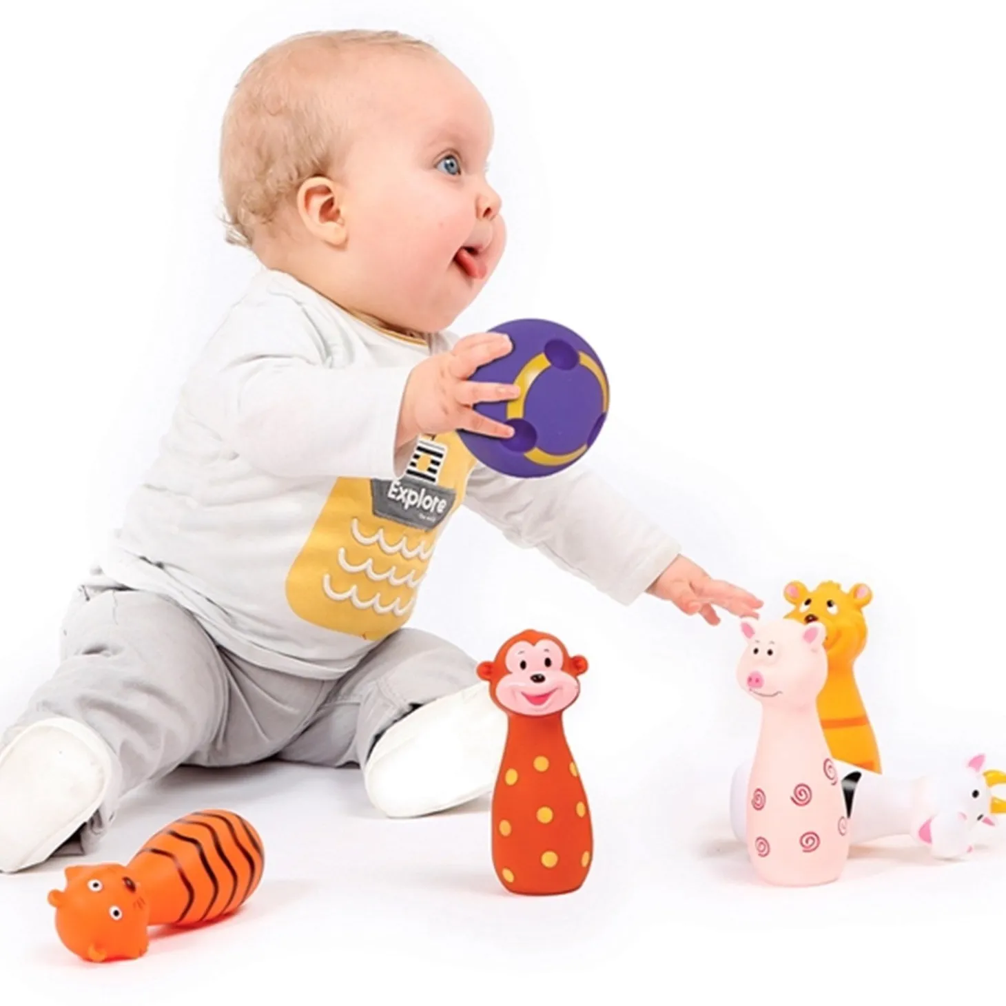 LUDI® Bowlingsættet er det perfekte aktivitetslegetøj til de små. Med kegler formet som sjove dyr, herunder en gris, en tiger, en ko, en abe og en bjørn, vil børnene elske at spille med dette sæt.