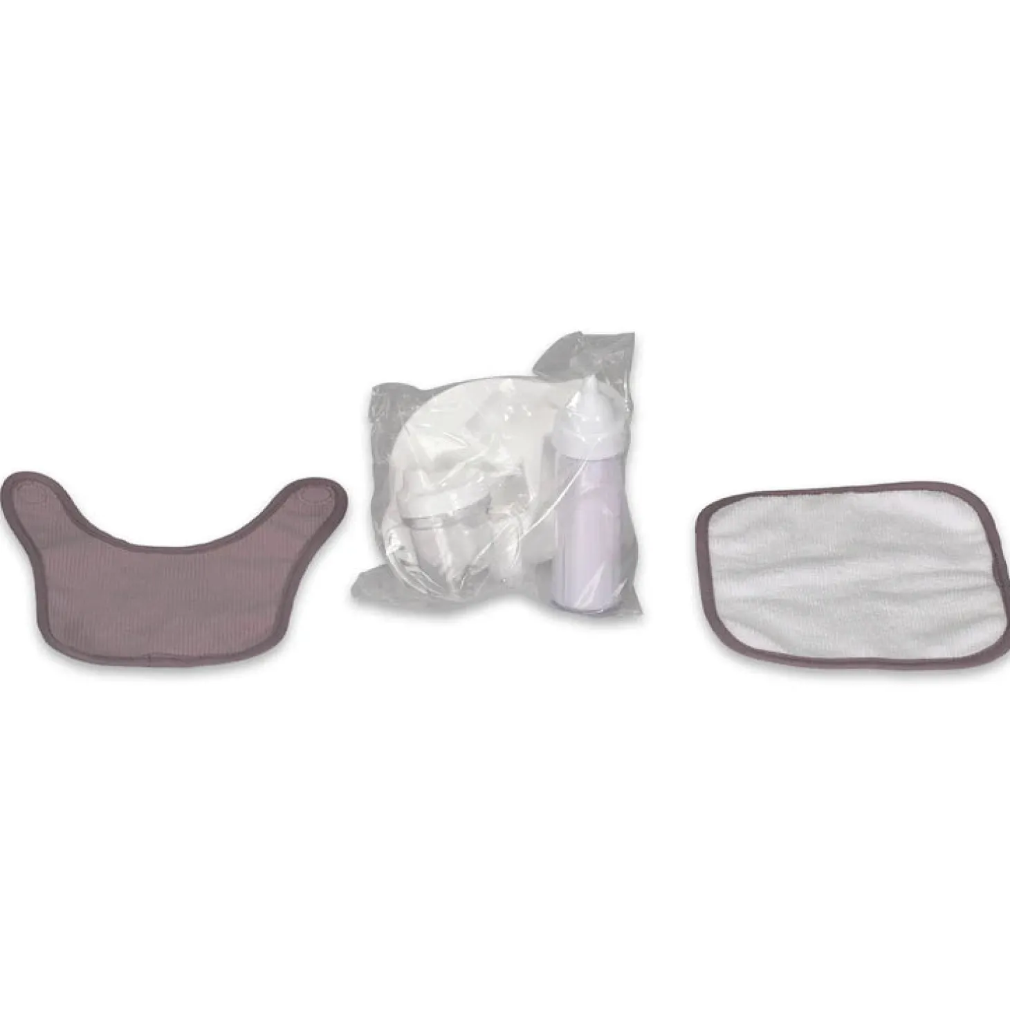 Skal dukken have mælk fra sutteflasken, eller skal den have skemad i dag? Det kan være svært at bestemme sig. Undgå at stå og mangle en af delene med dette fine og praktiske sæt fra MAMAMEMO® Dolls.