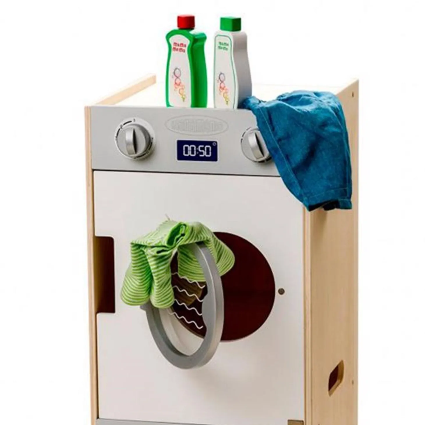 Med MaMaMeMo Vaskesøjlen kan børnene nu lege med at vaske tøj ligesom de voksne. Denne fine vaskesøjle har mange detaljer, herunder en vaskemaskine, en tørretumbler med knapper, en vaskeskuffe og knapper med drejefunktion. Lad børnene hjælpe med vasketøjet på en sjov og fantasifuld måde.