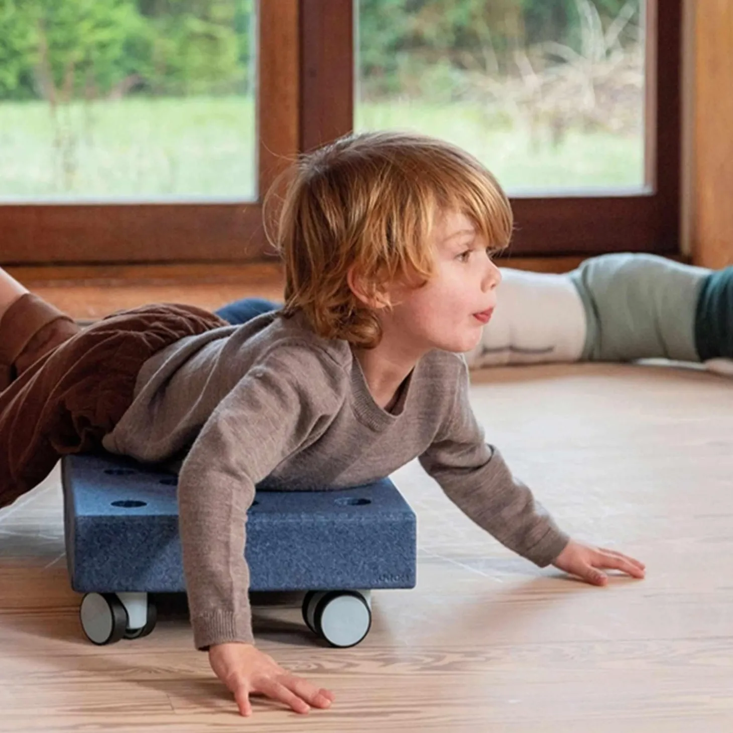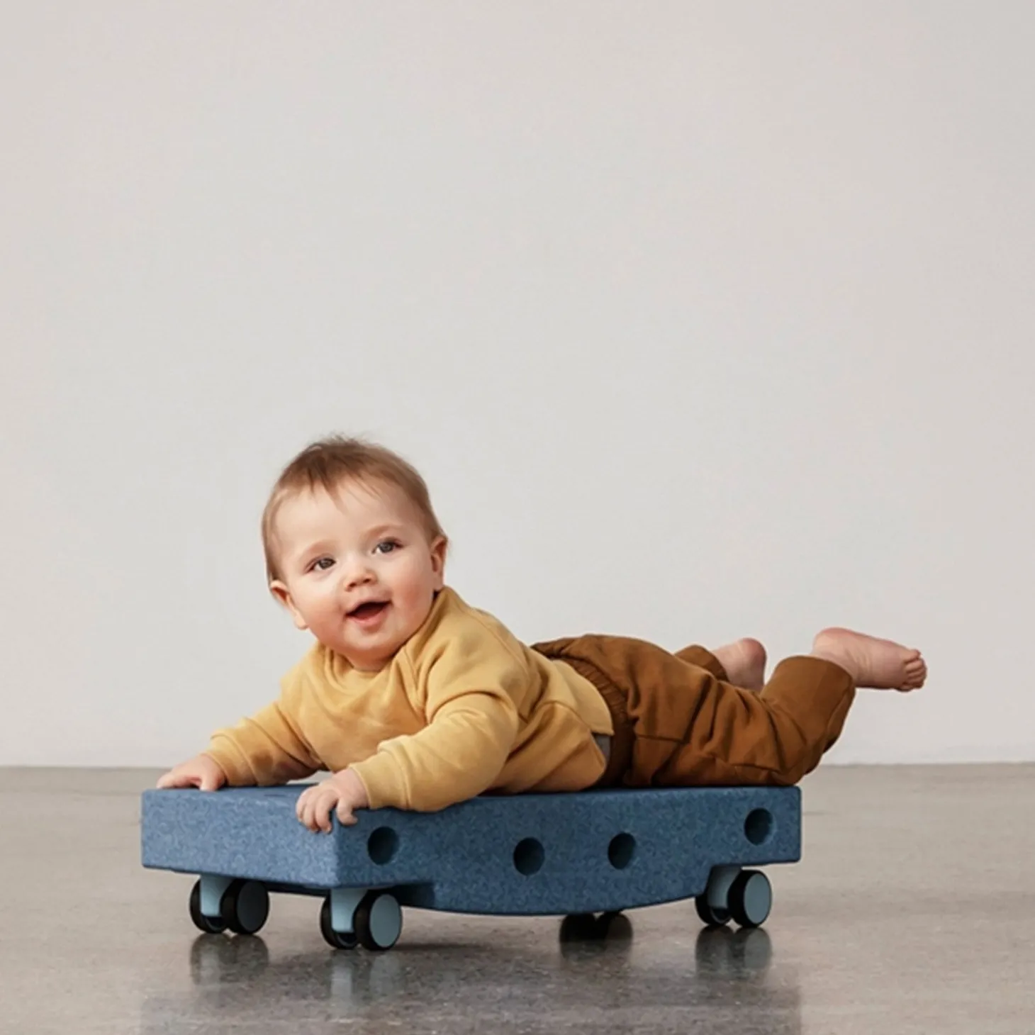 Dette motoriske legetøj består af 5 dele, herunder en klods/basen og fire drejehjul, som giver mulighed for forskellige legemuligheder. Velegnet til børn fra 0 til 6 år og med en maksimal vægtkapacitet på 50 kg, er dette rullebræt lavet af 100% genanvendeligt EPP-skum og fødevaregodkendt ABS, hvilket gør det nemt at rengøre.