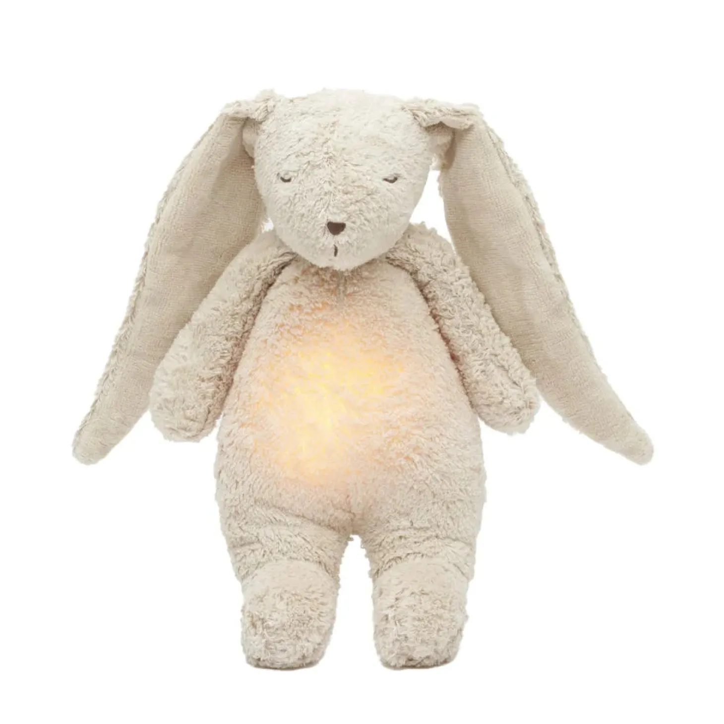 Moonie Kaninen 2.0 er fremstillet i økologisk bomuld og udstyret med genopladelig lyd- og lysmodul. Den er nem at bruge, sikker for selv nyfødte og en smuk del af både soveværelset og hverdagen.