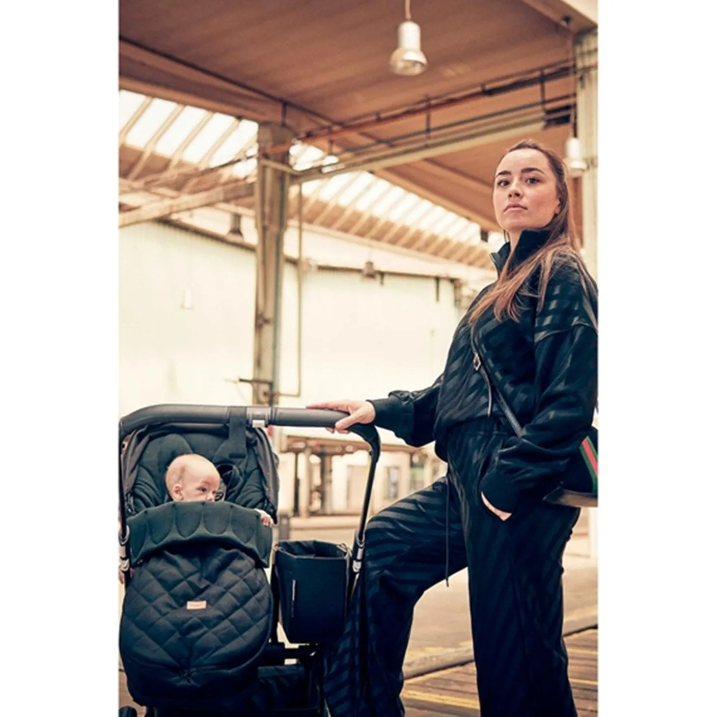 Fyldet i køreposen er lavet af genanvendeligt microfiber Sorona, hvilket gør den ideel til efteråret og vinteren. Med lynlåse i siderne er det nemt at placere dit barn sikkert og komfortabelt i posen, uanset vejrforholdene.