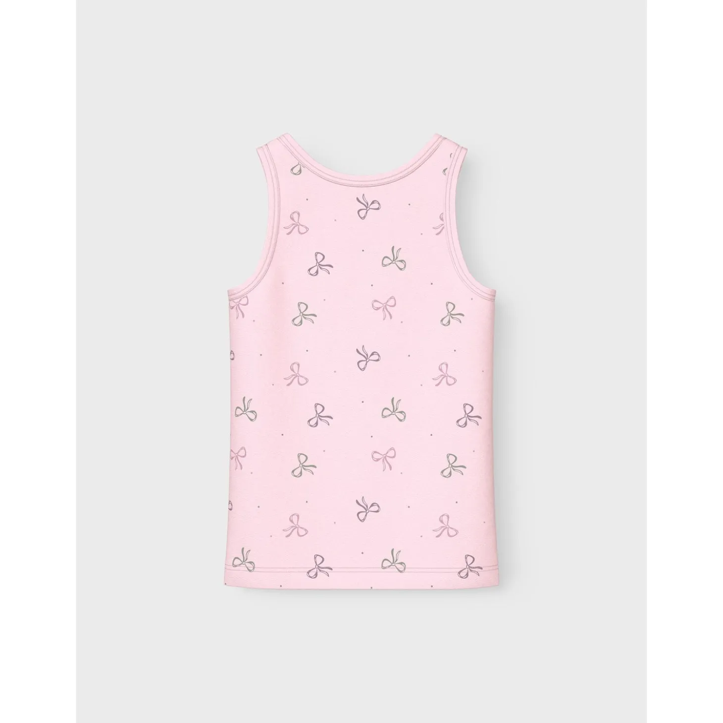 Tilføj et strejf af sødme til hverdagen med Name It Barely Pink Tank Top 2-pak. Disse charmerende undertrøjer i en sart rosa farve prydes af søde sløjfer og er fremstillet af blødt og behageligt materiale, der er skånsomt mod børns hud. Perfekt til både leg og afslapning, og kan nemt vaskes i maskinen. En ideel kombination af stil og funktionalitet, som sikrer dit barn komfort hele dagen.
