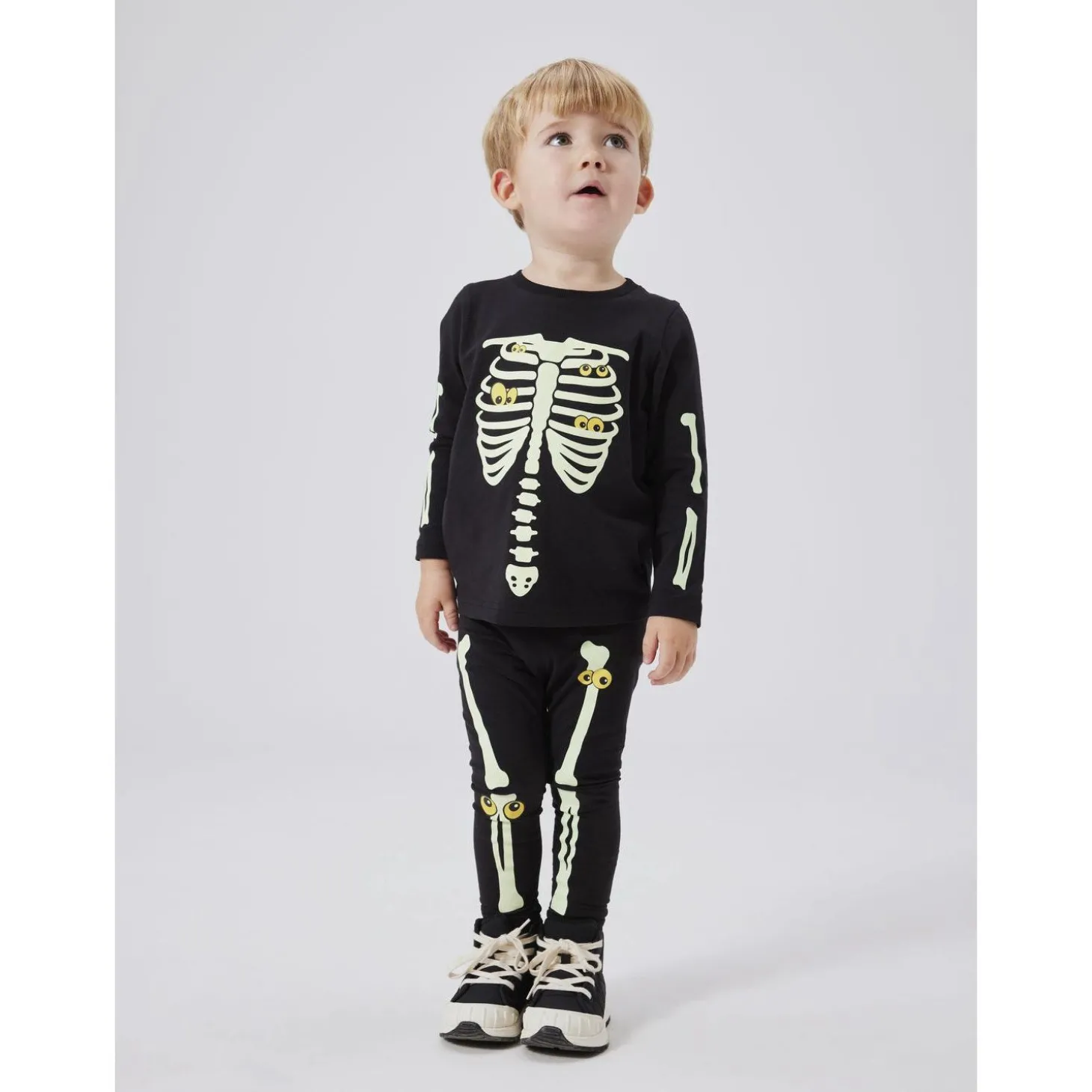 Dit barn vil elske at klæde sig ud i dette Name It Black Yellow Oween Top Sæt Skeleton. Perfekt til både legedage og festlige begivenheder. Sættet er lavet af let og elastisk jersey, hvilket giver fuld bevægelsesfrihed til dit barn under alle aktiviteter.