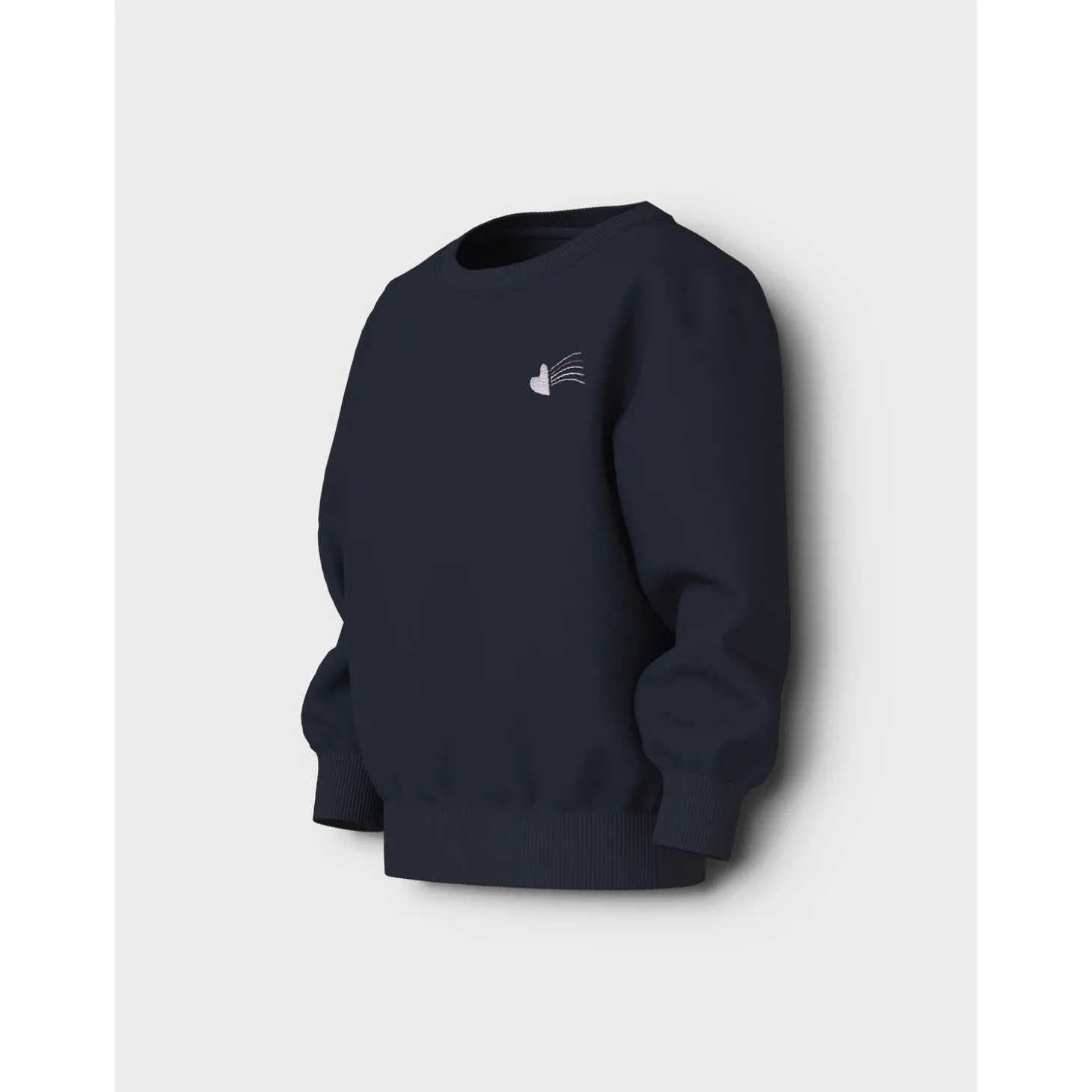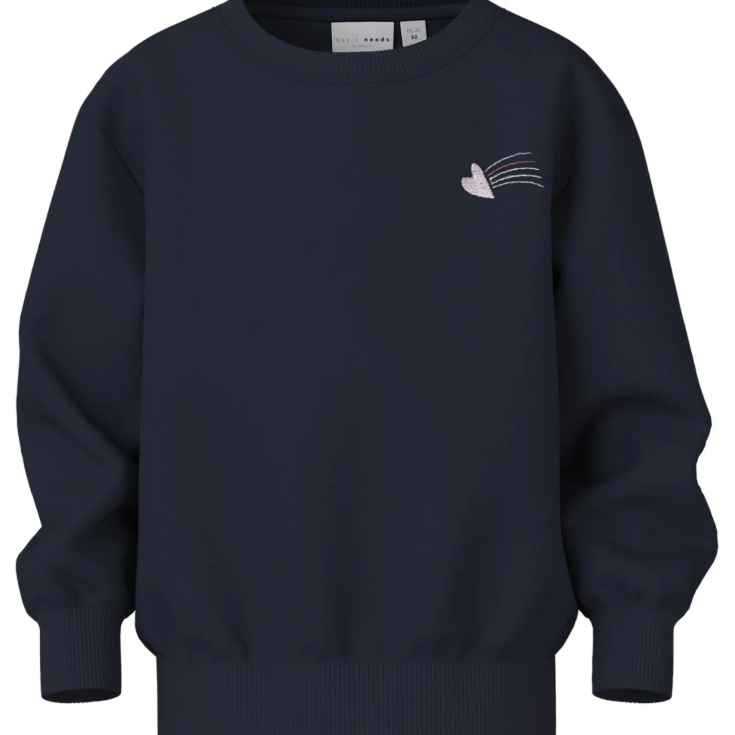 Opgradér dit barns garderobe med den stilfulde Name It Dark Sapphire Heart Vallene Sweatshirt. Denne sweatshirt kombinerer en elegant mørke sapphire-farve med et sødt hjerte broderi og en utrolig behagelig pasform. Lavet af børstet sweatstof, denne sweatshirt sikrer en blød og varmende oplevelse med sin behagelige inderside.