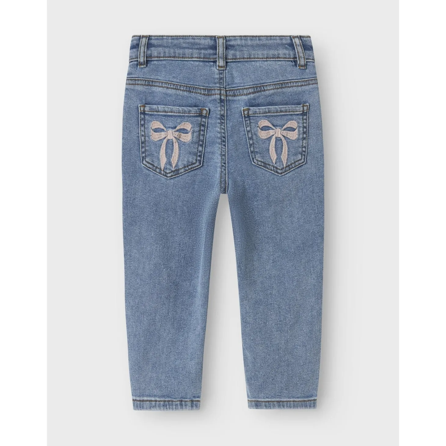 Opgradér din barns garderobe med disse Name It Medium Blue Denim Bow Embroidery Nmfbella Mom Emb Jeans. Disse jeans kombinerer robusthed og stil med deres denim materiale og er perfekte til hverdagsbrug. Med en charmerende mom fit silhuet og tilstrækkelig strækning til optimal pasform og komfort, tilføjer de fine broderidetaljer et unikt touch. Den mellemhøje talje og justerbare indstillinger sikrer en perfekt pasform, selv når dit barn vokser.
