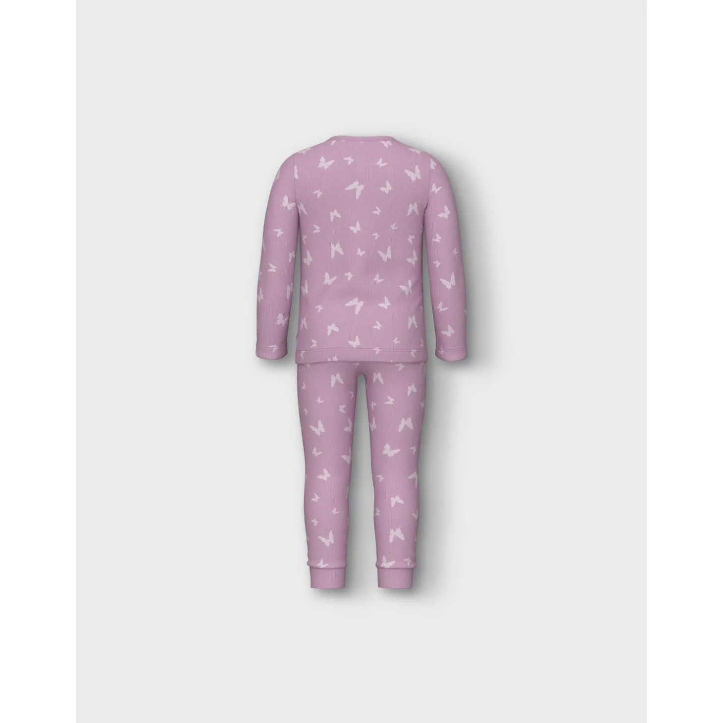 Forkæl dit barn med disse Name It Pink Lavender pyjamas og gør sengetid til en hyggelig oplevelse. Designet i blødt ribstrikket materiale med en elastisk talje og lange ærmer, sikrer dette natsæt en behagelig pasform hele natten. Det charmerende pink butterfly-mønster vil glæde enhver lille drømmer og gøre pyjamasen til det perfekte valg til afslappede hjemmedage eller en god nats søvn.