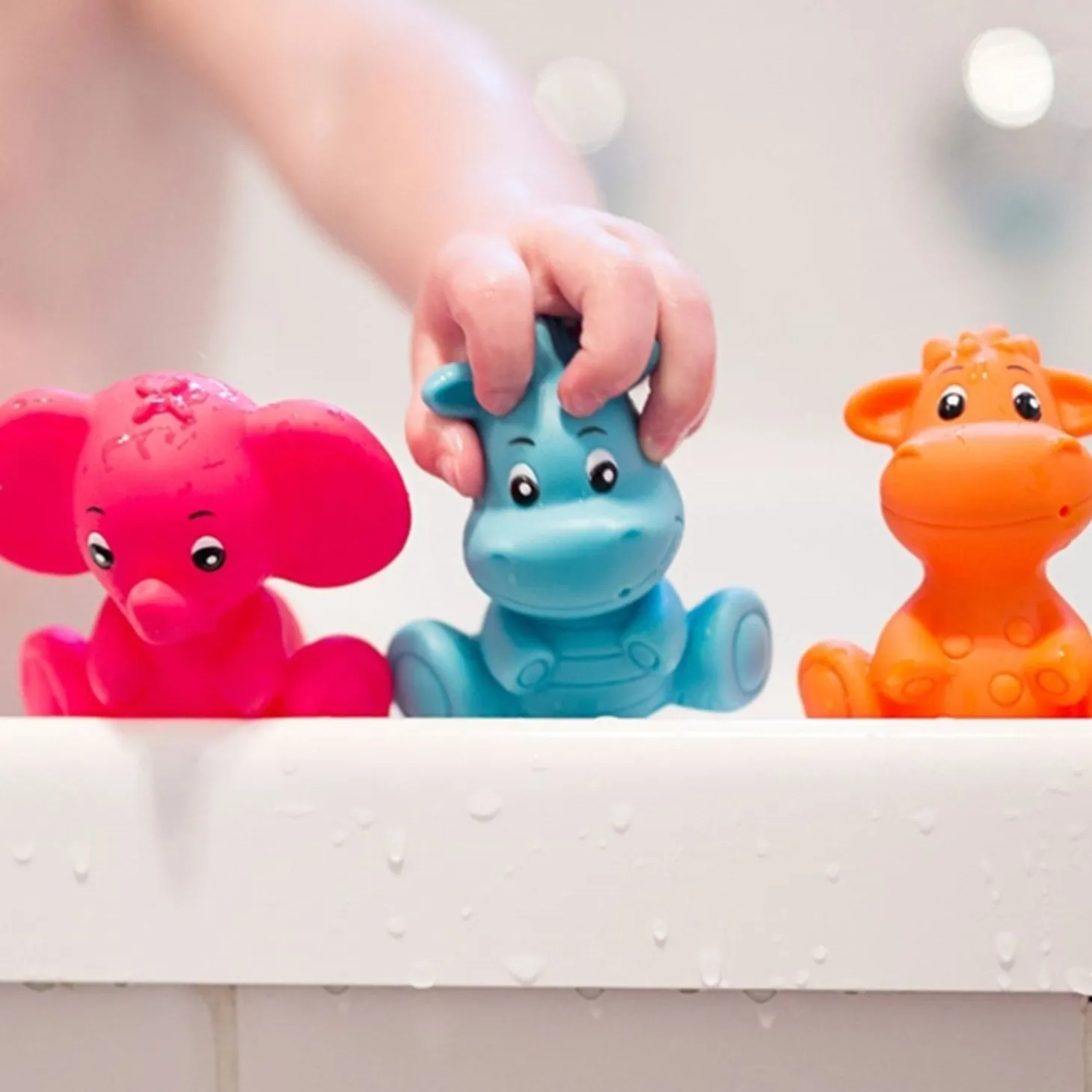 Med Playgro Badevenner Jungle Forseglet får dit barn de sødeste badevenner til sjov i badekaret eller poolen. Disse sjove badedyr er specielt designet med en forseglet konstruktion, der forhindrer dannelse af mug og skimmel, hvilket sikrer en sund og sikker leg.