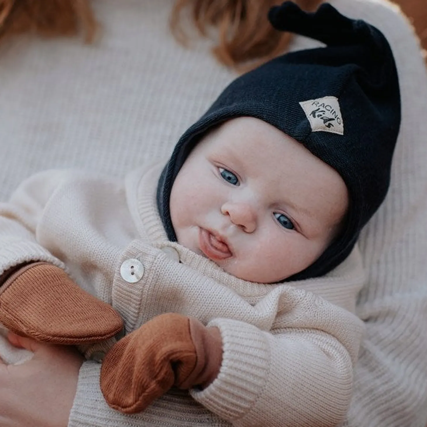 - Materiale: 50% uld, 50% akryl (udenpå), 97% økologisk bomuld, 3% Lycra (foer)