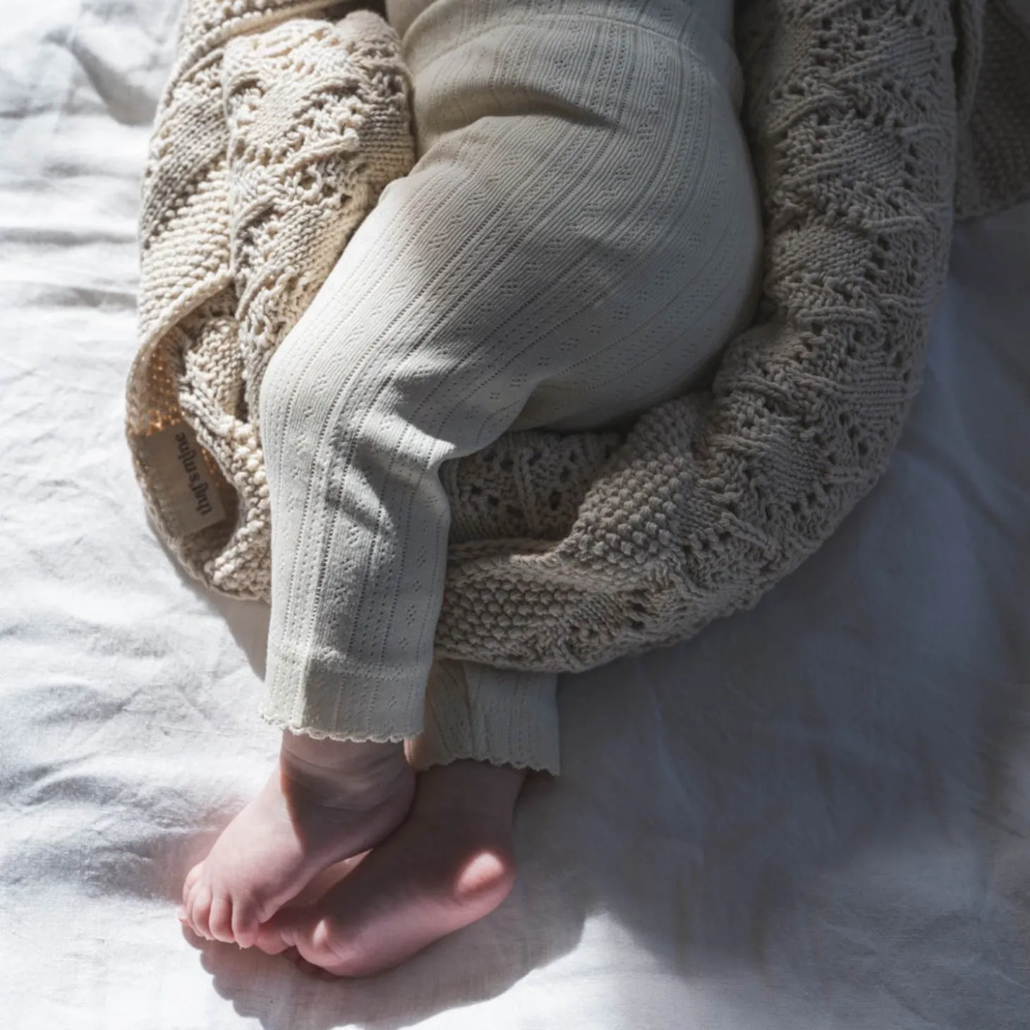 Dette tæppe er let at vedligeholde takket være dets økologiske materiale og sarte strik. Det kan maskinvaskes, hvilket gør det praktisk for travle forældre. Designet til at holde i mange år og bevare sin form og blødhed gennem utallige vaske, er dette tæppe en holdbar og værdifuld investering.