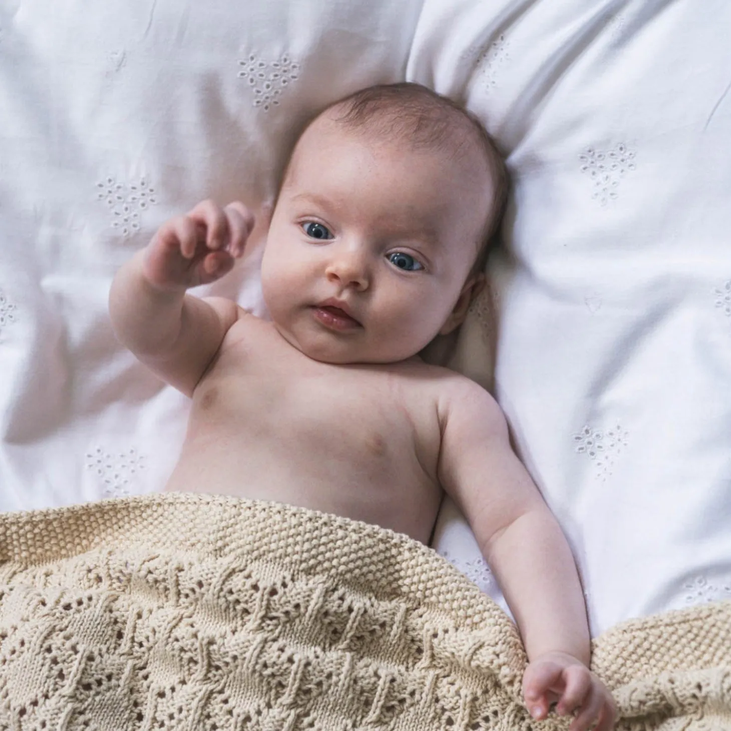 Tæppet er lavet af 100% økologisk bomuld, hvilket sikrer en blød og naturlig kontakt med din babys sensitive hud. Med målene 85×85 cm er det ideelt til at svøbe dit barn til nattesøvn eller til hyggelige stunder i løbet af dagen.