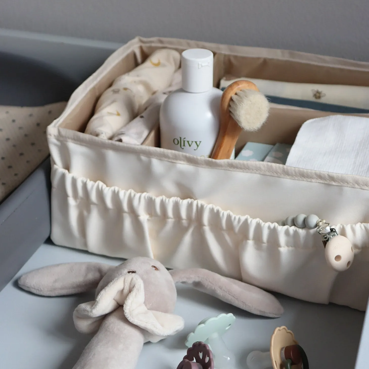 Opgrader dit pusleområde med stil og funktionalitet med That’s Mine Light Creme Lily Nursing Organizer. Denne smarte opbevaringsboks er designet til at gøre pusletiden mere overskuelig og effektiv. Med aftagelige skillevægge og praktisk velcrolukning kan du tilpasse opbevaringen præcis efter dit og dit barns behov.