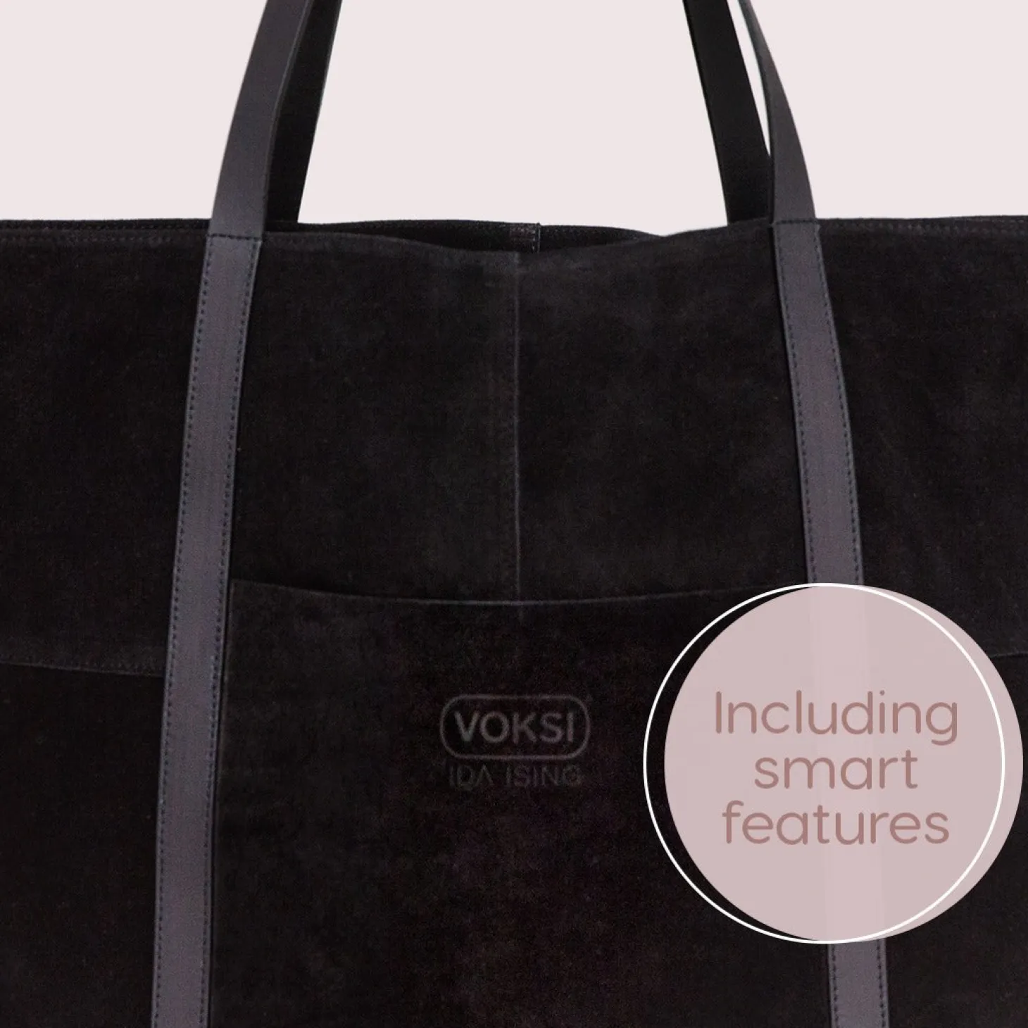 Pusletaske fra Voksi Ida Ising, i et elegant look, med masser af praktisk opbevaring til både forældre og baby.