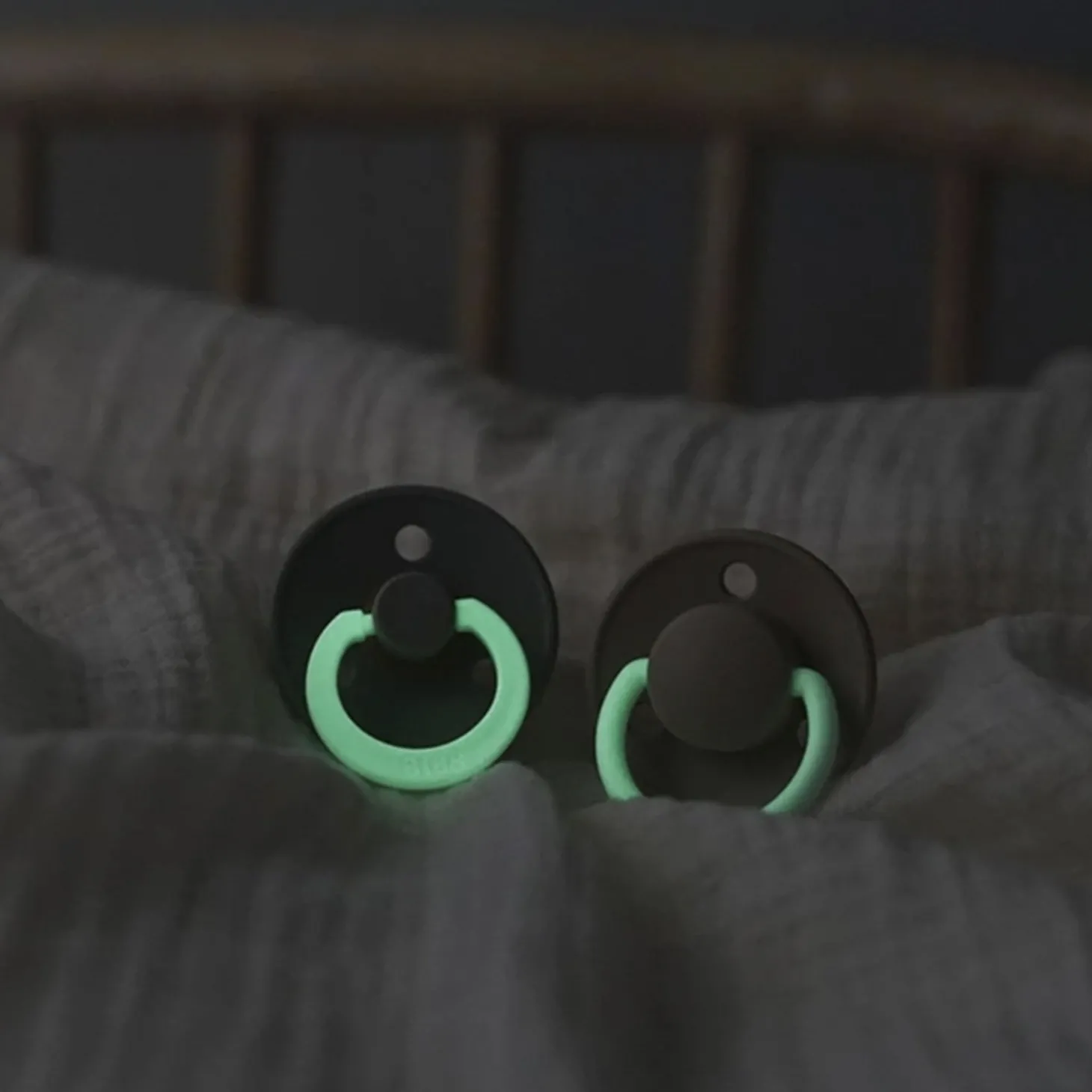 Denne pakke indeholder to sutter med hanker, der lyser i mørke, hvilket gør dem nemme at finde om natten. Med en design- og produktionsproces i Danmark er disse sutter helt fri for skadelige stoffer som BPA, PVC og phthalater, så du kan have ro i sindet.