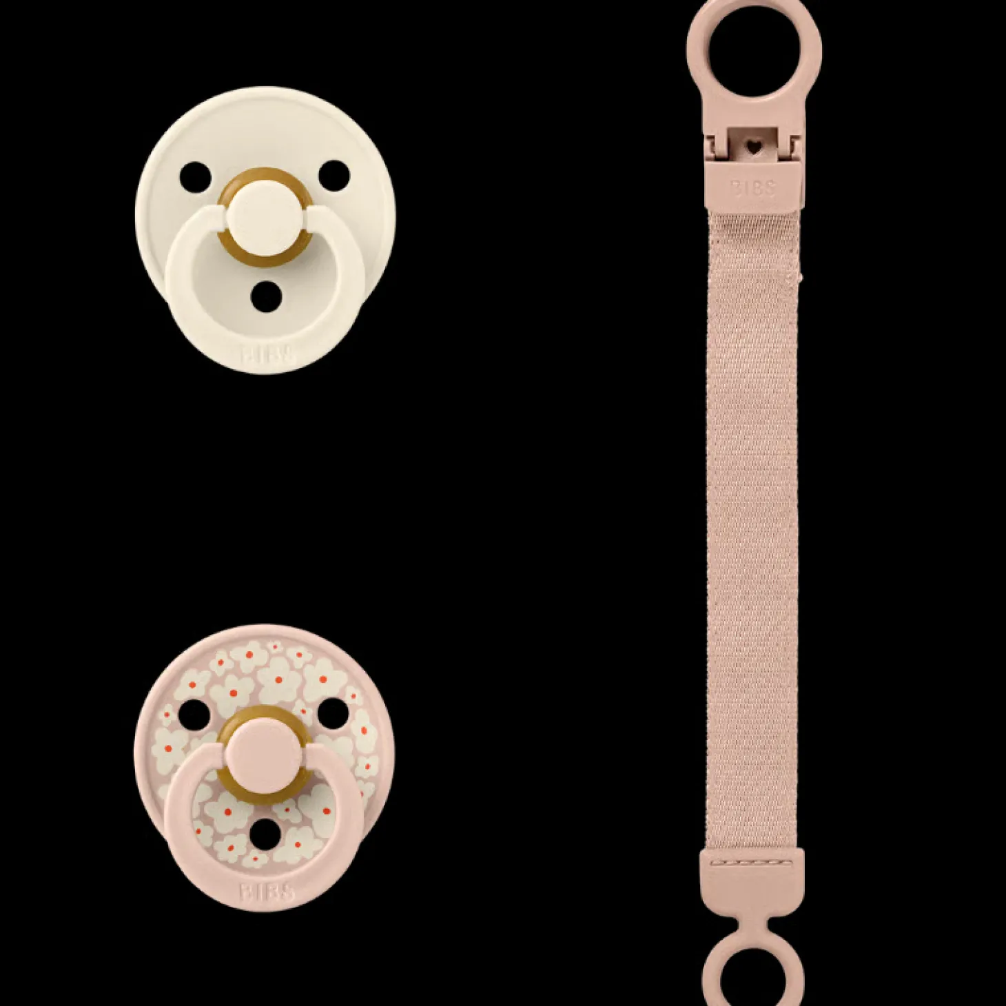 BIBS Colour Pacifier & Loop Clip Gift Set Latex Size 1 Blush
