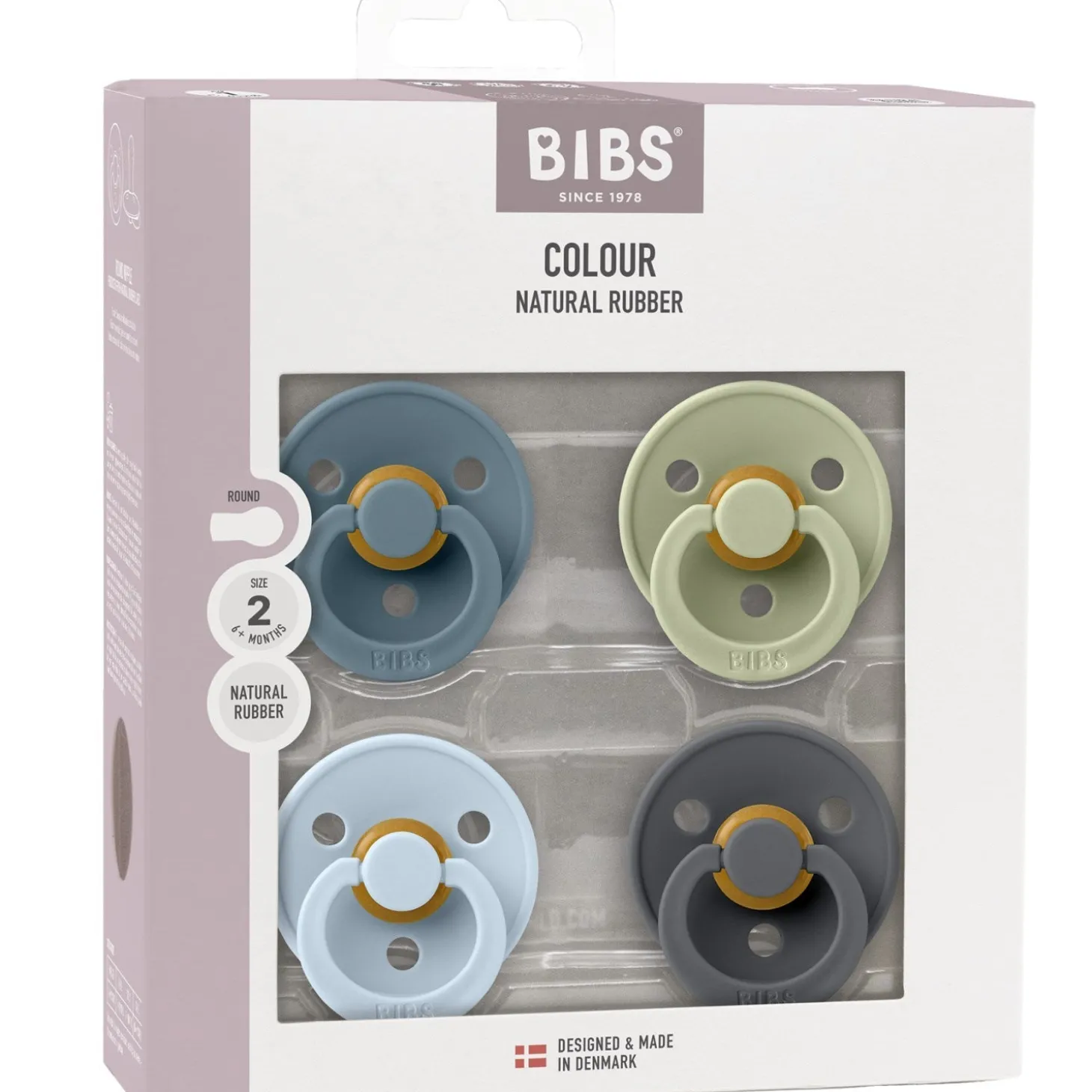 Opdag BIBS Colour sutterne i en smuk 4-pak bestående af petrol, sage, baby blå og jernfarver. Disse populære sutter har været et sikkert valg i over 40 år, og det er ikke uden grund. Den bløde latex-nippel fås i tre forskellige former – rund, flad symmetrisk og anatomisk – alle skabt med fokus på dit barns velvære og udvikling.