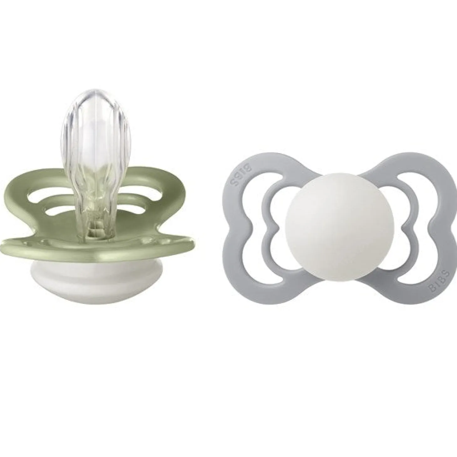 Opdag Bibs Supreme Silikone Sutter Glow 2-pak i farverne Sage og Cloud – den perfekte kombination af stil og funktion. Disse sutter er designet med barnets komfort og udvikling for øje, hvilket hjælper med at reducere trykket på tandstillingen og støtte en korrekt kæbeudvikling. De store huller i skjoldet sikrer optimal luftcirkulation omkring barnets mund, samtidig med at den sensitive hud beskyttes.