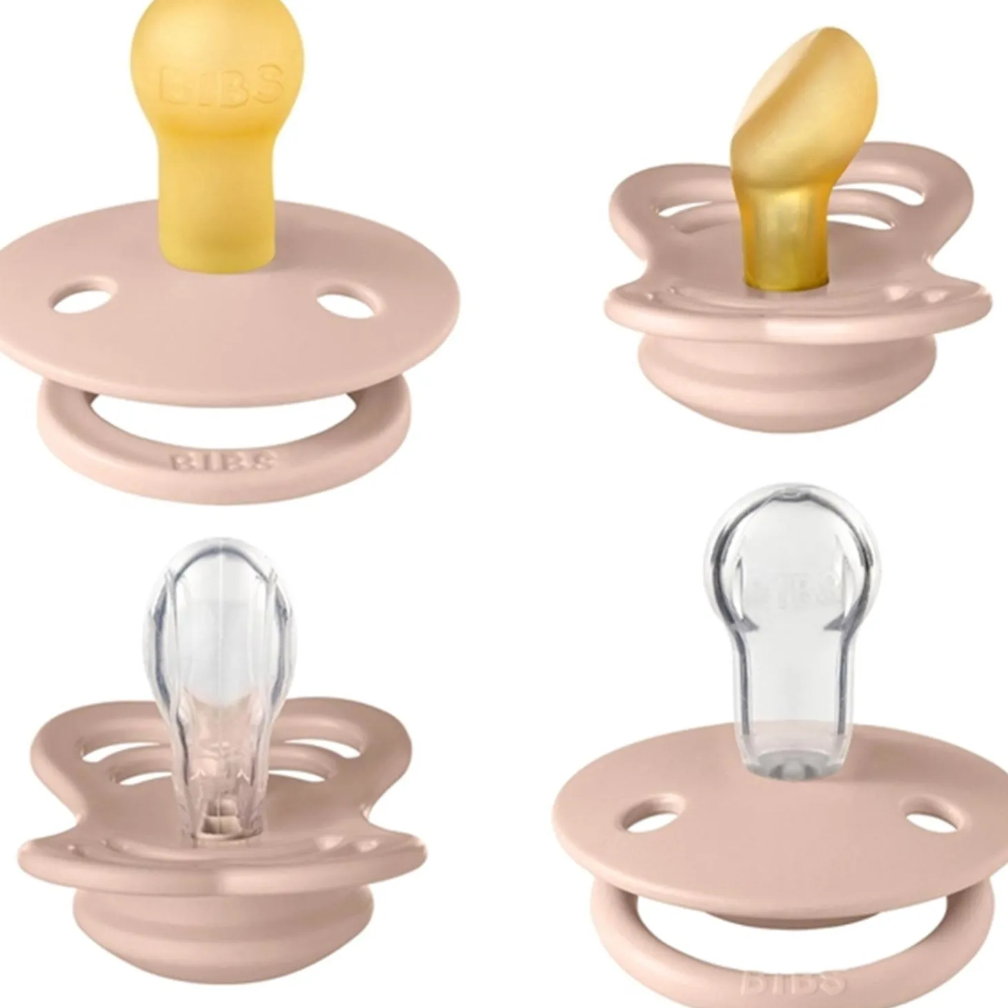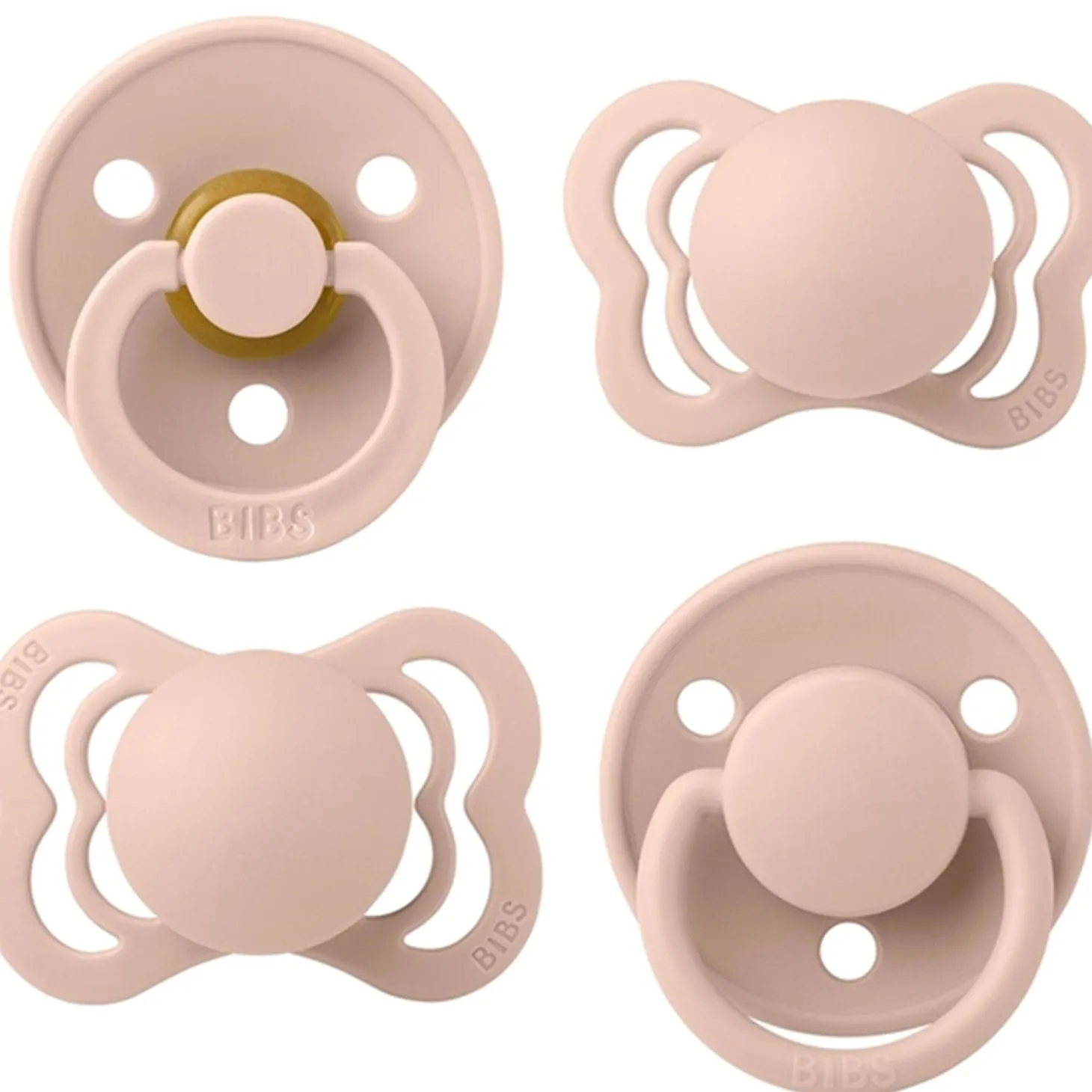 Opdag Bibs Try-it Collection sutter i en skøn blush farve, perfekt til din lille guldklump. Med en 4-pak i forskellige former kan du finde den sut, som passer bedst til din baby.