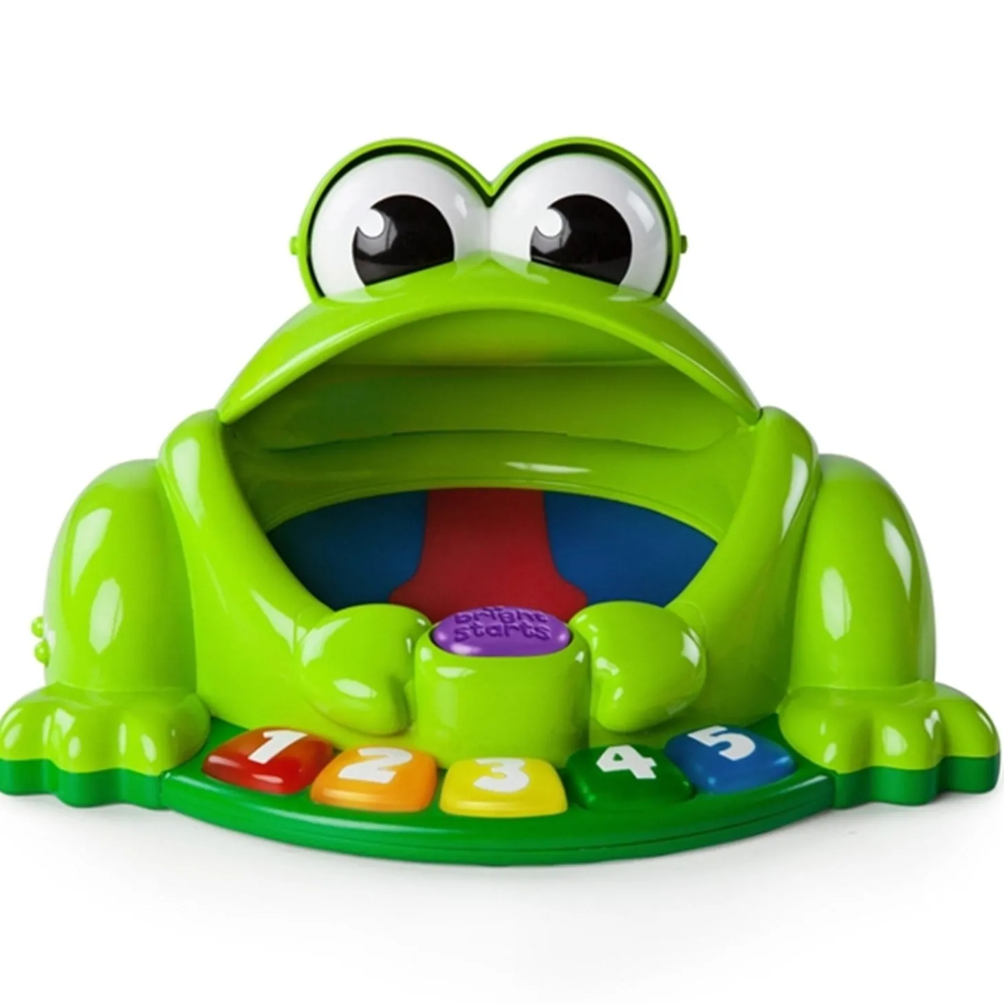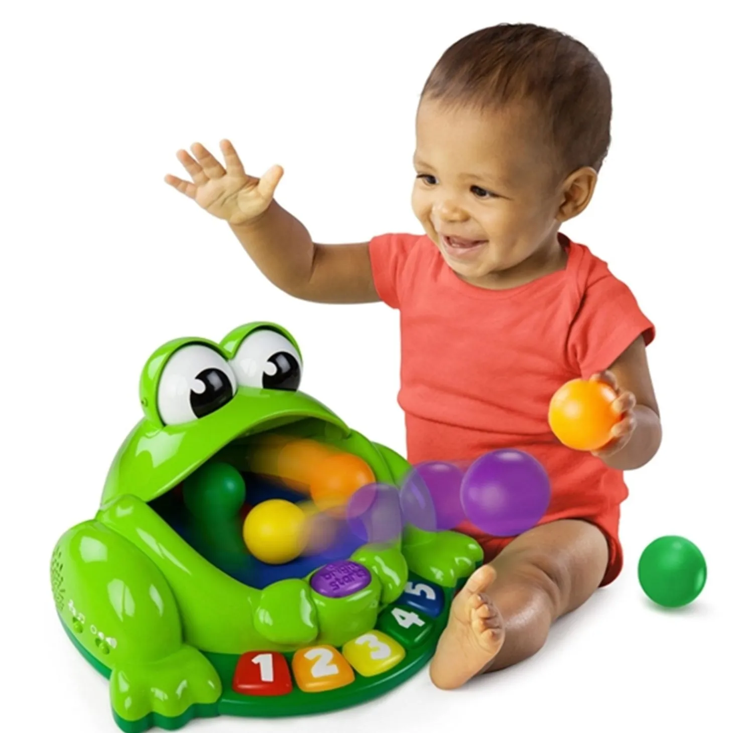 Med 6 bolde inkluderet kan dit barn putte boldene ind i frøens mund og se dem poppe frem og tilbage, hvilket vil resultere i de skønneste grin. Tryk på de 5 farver og tal for at høre sjove lyde og melodier, der vil stimulere sanserne.