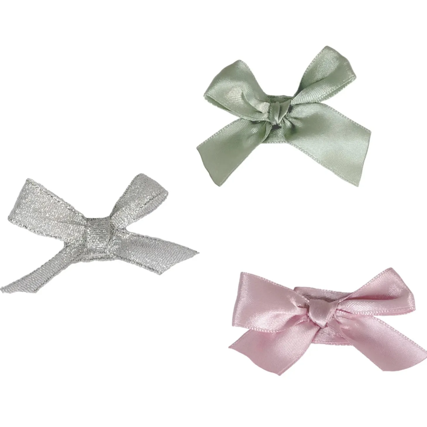 Der medfølger 3 forskellige sløjfer i farverne sølv, dusty rose og dusty green. Sløjferne er med VELCRO®, så de nemt kan sættes bag på ride hjelmen og udskiftes efter humør.