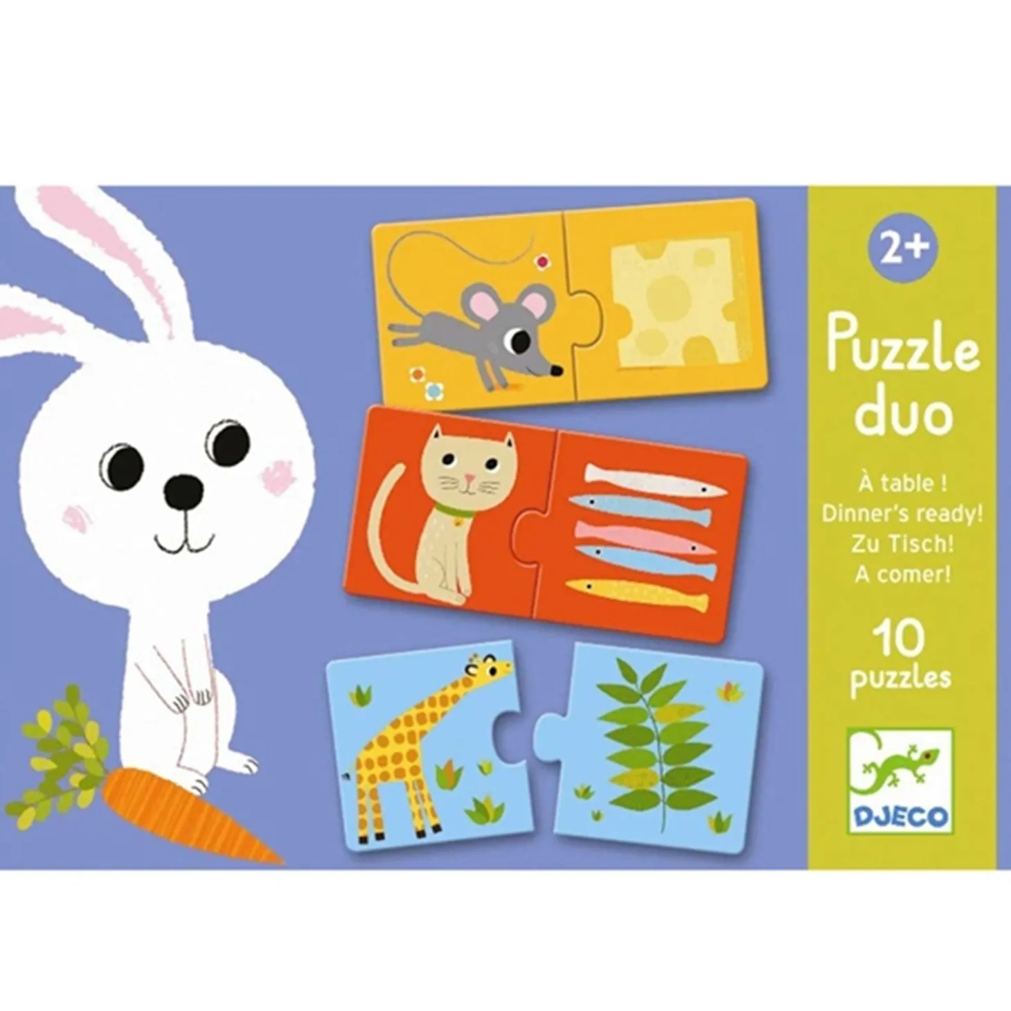 Oplev en sjov og lærerig aktivitet med Djeco Puslespil Hvem Spiser Hvad. Dette sæt består af 10 puslespil med 2 brikker hver, der viser et dyr og dets tilhørende mad. Børnene vil elske at matche dyrene med den rigtige mad, samtidig med at de lærer om forskellige dyrearter og deres kostvaner.