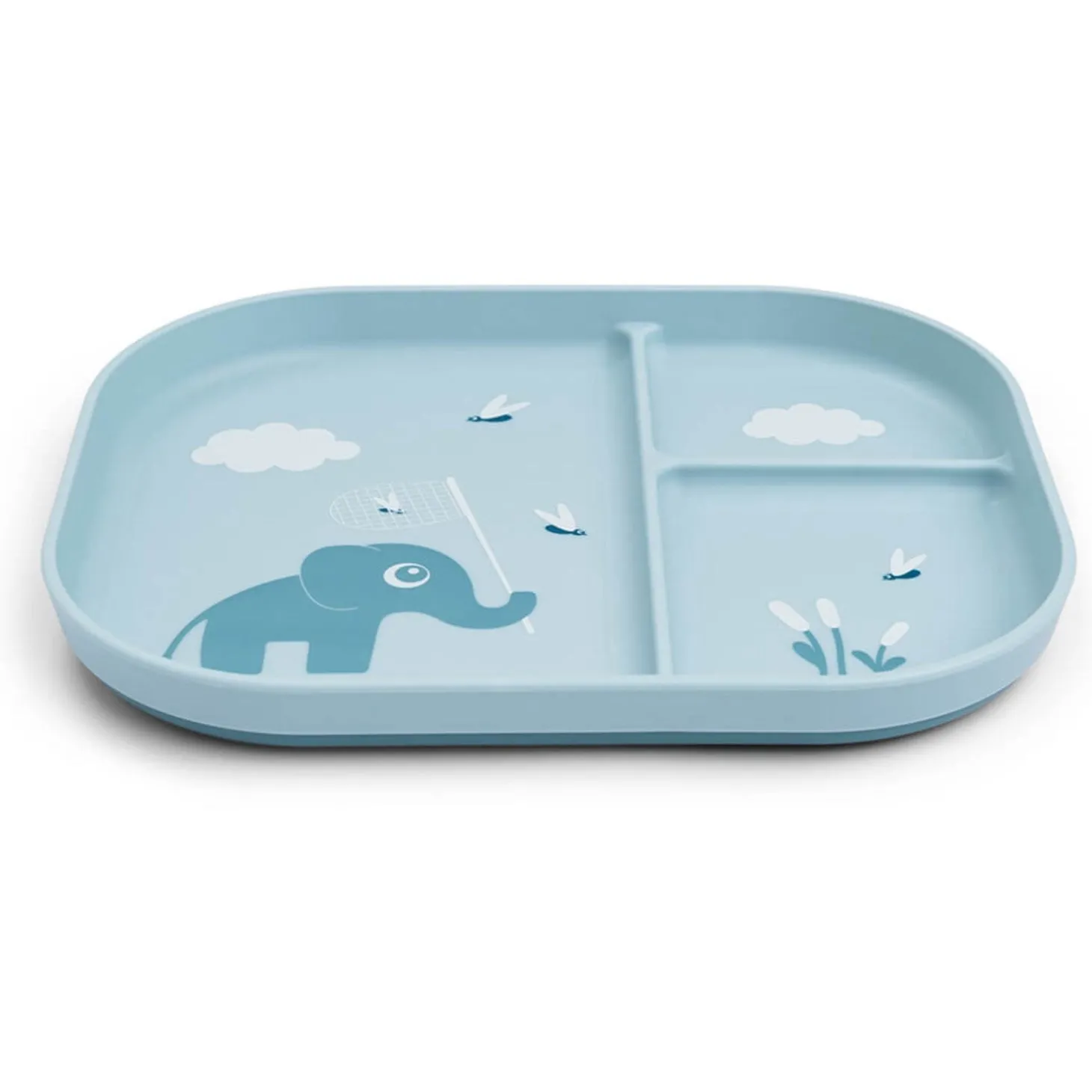 Denne tallerken er designet med praktiske funktioner, herunder en antiskrid-base, tre opdelinger til mad, og materialer af høj kvalitet. Den er ideel til børn fra 0 år og opefter, og måler 22 x 18 x H 2 cm.