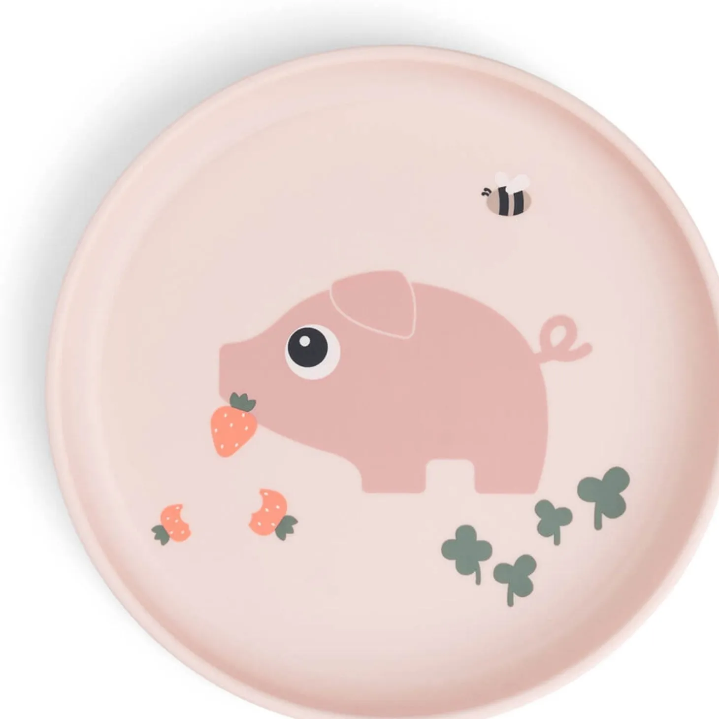 DonebyDeer Pudder Foodie Tallerken Tiny Farm gør måltiderne sjovere og mere sikre for dit barn. Med et charmerende farm-design og strikte sikkerhedsnormer og certificeringer er denne tallerken designet med dit barns velbefindende i tankerne. Den fremmer selvstændighed ved måltiderne og er nem at håndtere og rengøre.