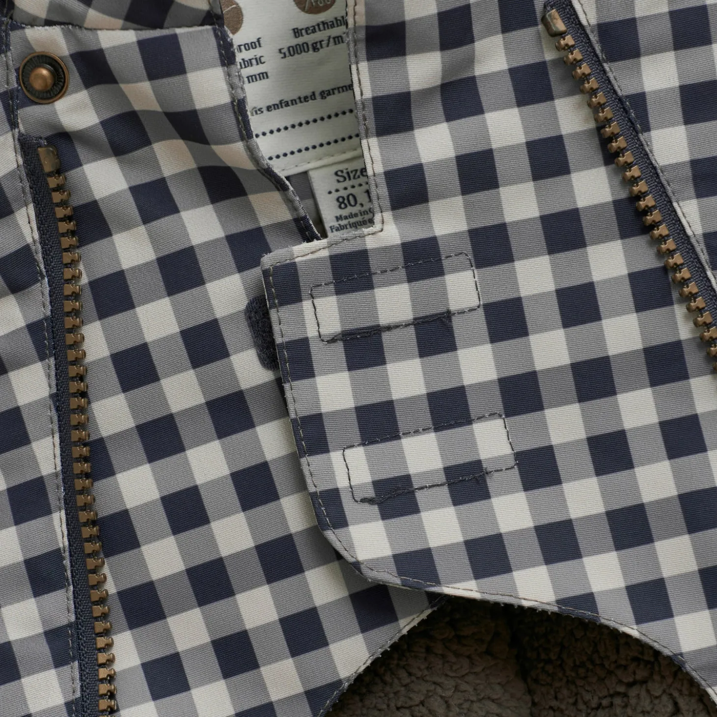 Materialet er åndbart, vind- og vandtæt, så dit barn kan være ude i regn, sne og blæst uden at blive kold og våd.