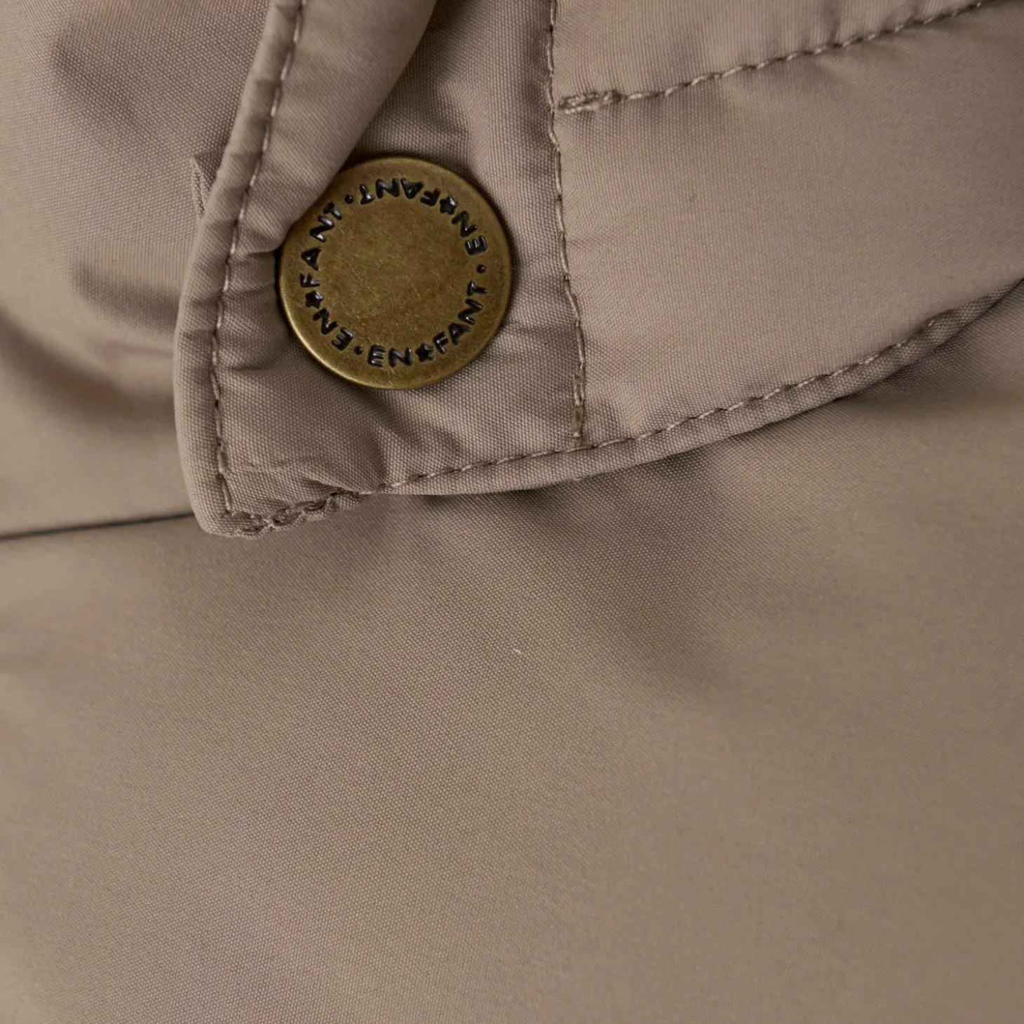 Varm quiltet jakke fra EN FANT i et stilfuldt og praktisk design. Jakken er åndbar, vind- og vandtæt med et testet vandsøjletryk på 8.000 mm og en åndbarhed på 3.000 g, hvilket sikrer, at dit barn forbliver tør og varm i regn, sne og blæst. Designet har en kvalitetslynlås foran med hagebeskytter for ekstra komfort. Jakken er udstyret med en aftagelig hætte, elastik i ærmekanterne, et navneskilt indeni og et blødt for. Imprægneret med BIONIC FINISH® ECO. Certificeret i hht. GRS – Made with more than 50% Recycled Material CERES-0366, Certificeret i hht. OEKO-TEX® STANDARD 100 Cert. No. 2476-411R DTI