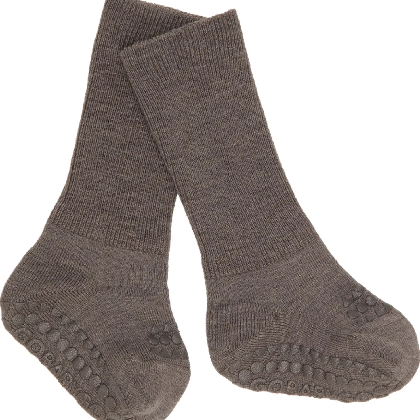 Opdag Gobabygo Brown Melange Non-Slip Strømper i Merino uld, skabt med fokus på dit barns sikkerhed og velvære. Disse strømper er lavet af temperaturregulerende og blød Superwash uld, der holder fødderne tørre og varme. Silikonepuder under fødderne og på tæerne sikrer stabilitet på glatte overflader, ideelt til kravle- og gåfasen. De lange skaft og ekstra rib omkring anklen giver en perfekt pasform, der ikke glider ned under leg.