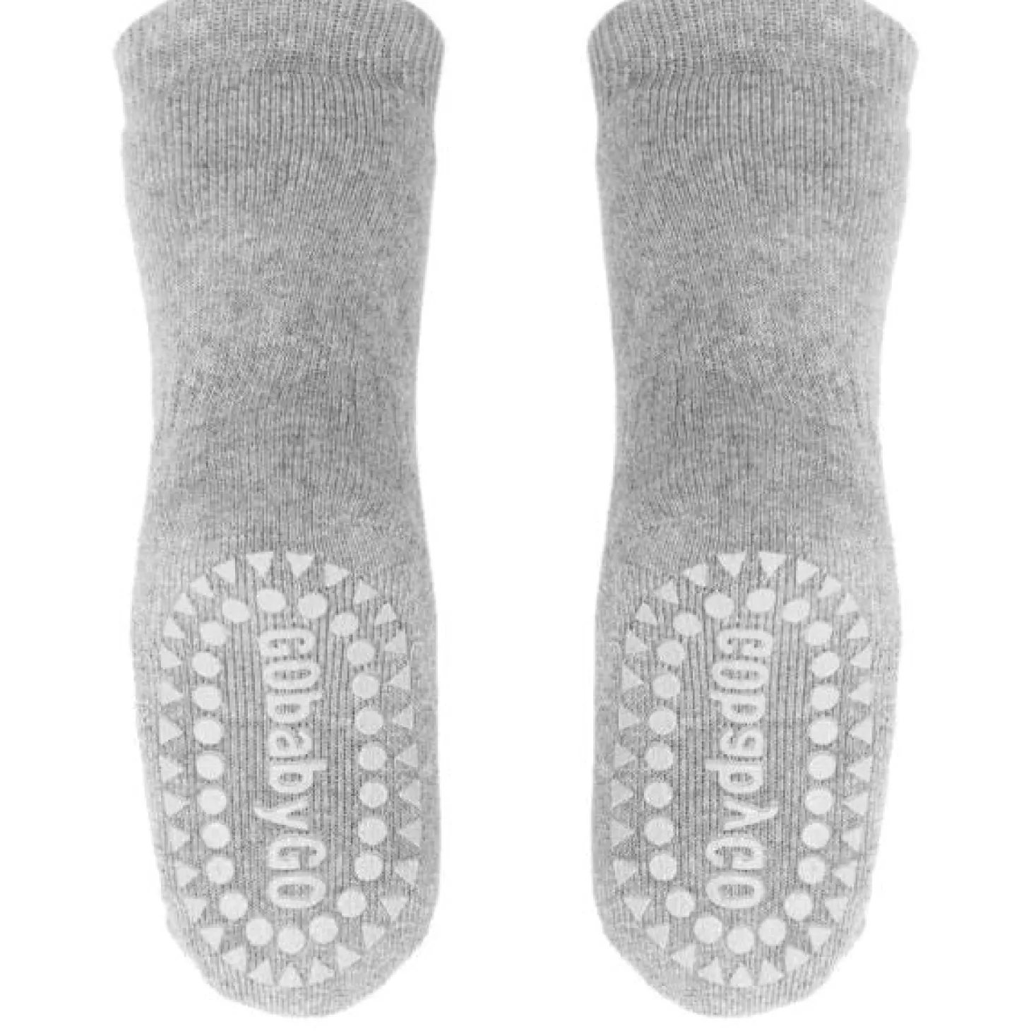 Forkæl dit barns fødder med GObabyGO skridsikre strømper i Grey Melange. Lavet af en blød og åndbar blanding af 80% bomuld, 17% polyamid og 3% elastan, sikrer disse behagelige strømper en god pasform og komfort. De unikt designet med skridsikre silikonegummipuder under fødderne og på tæerne, hjælper dit barn med at bevæge sig sikkert og uden at glide, når det lærer at kravle og gå.