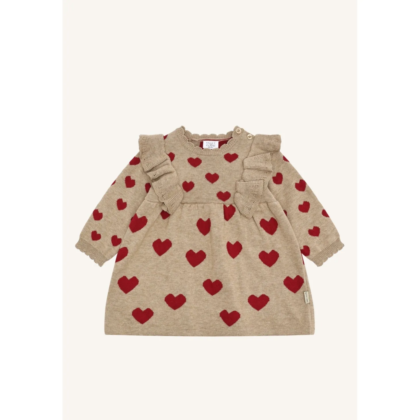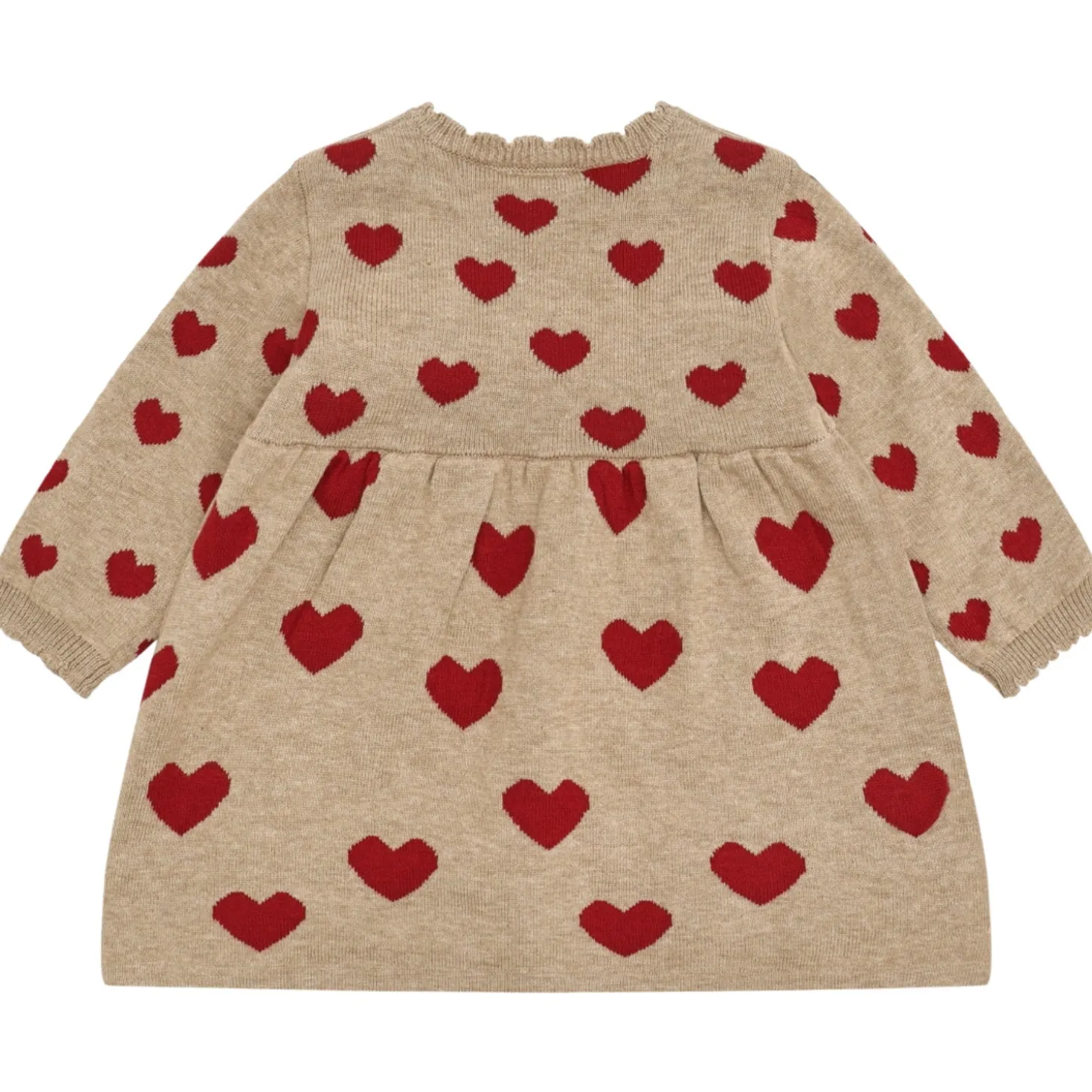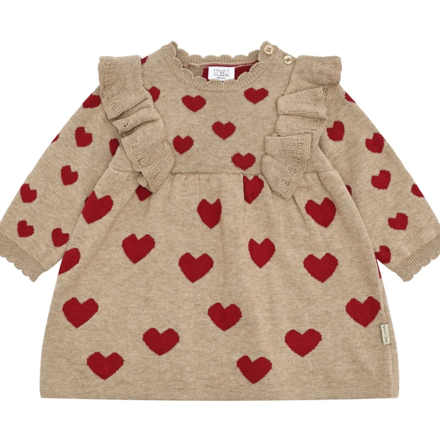 Opdag den uimodståelige Hust & Claire Biscuit Kristel Heart kjole, perfekt til små piger, der elsker komfort og stil. Den bløde økologiske bomuld sikrer en behagelig pasform hele dagen, mens det charmerende hjertemønster og pastelfarver tilføjer et stilfuldt touch.