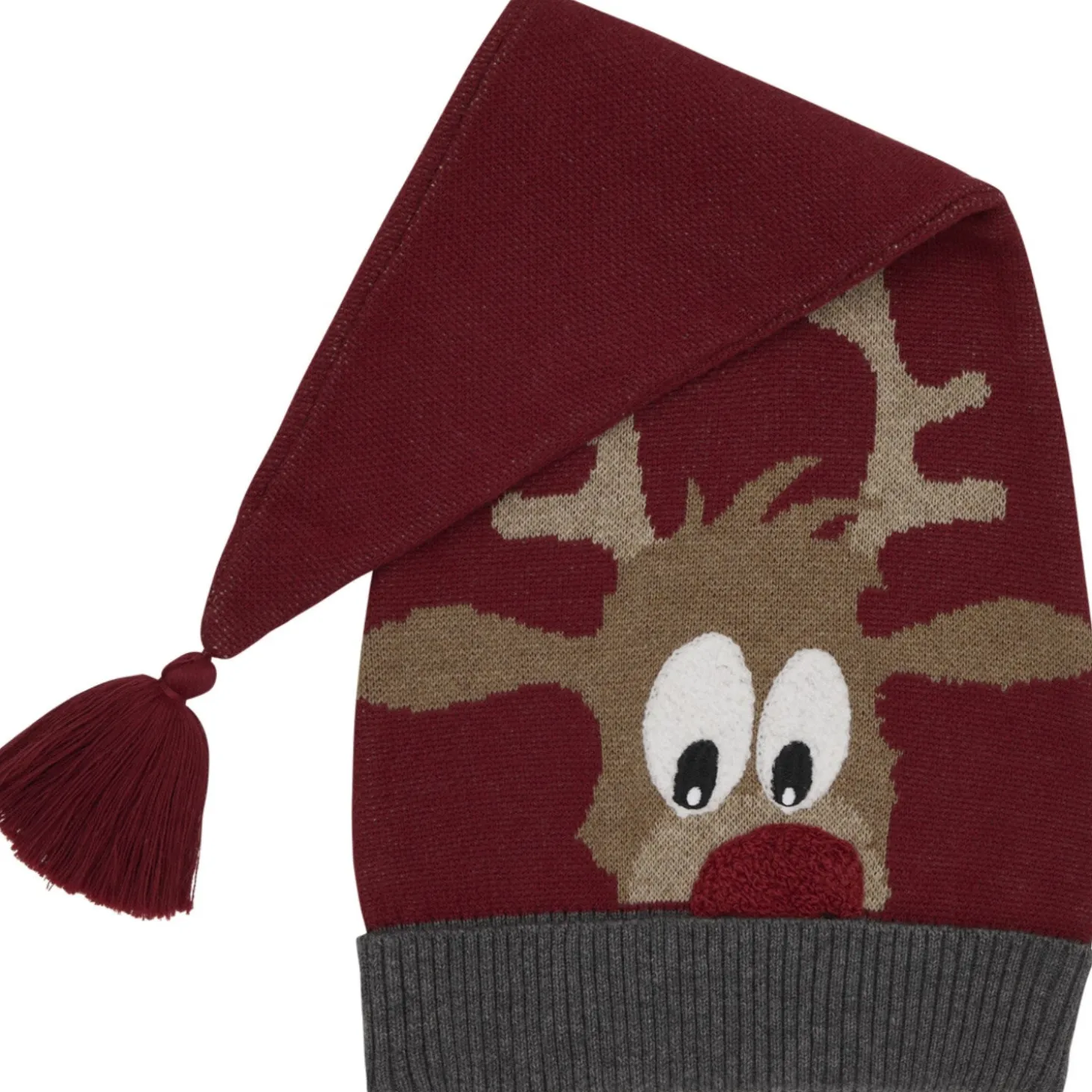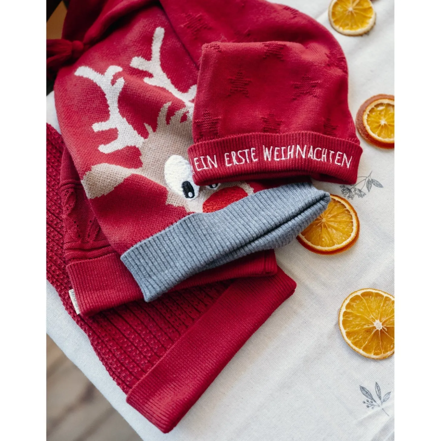 Giv din lille én et magisk vintertouch med den charmerende Hust & Claire Teaberry Fifi Nissehue. Denne strikkede nissehue er fremstillet i 100% økologisk bomuld, der sikrer en blød og behagelig oplevelse for dit barns følsomme hud. Huen prydes af et sødt rensdyr-motiv med detaljerede broderier, der tilfører et legesygt og øjnefaldende element til vintergarderoben.