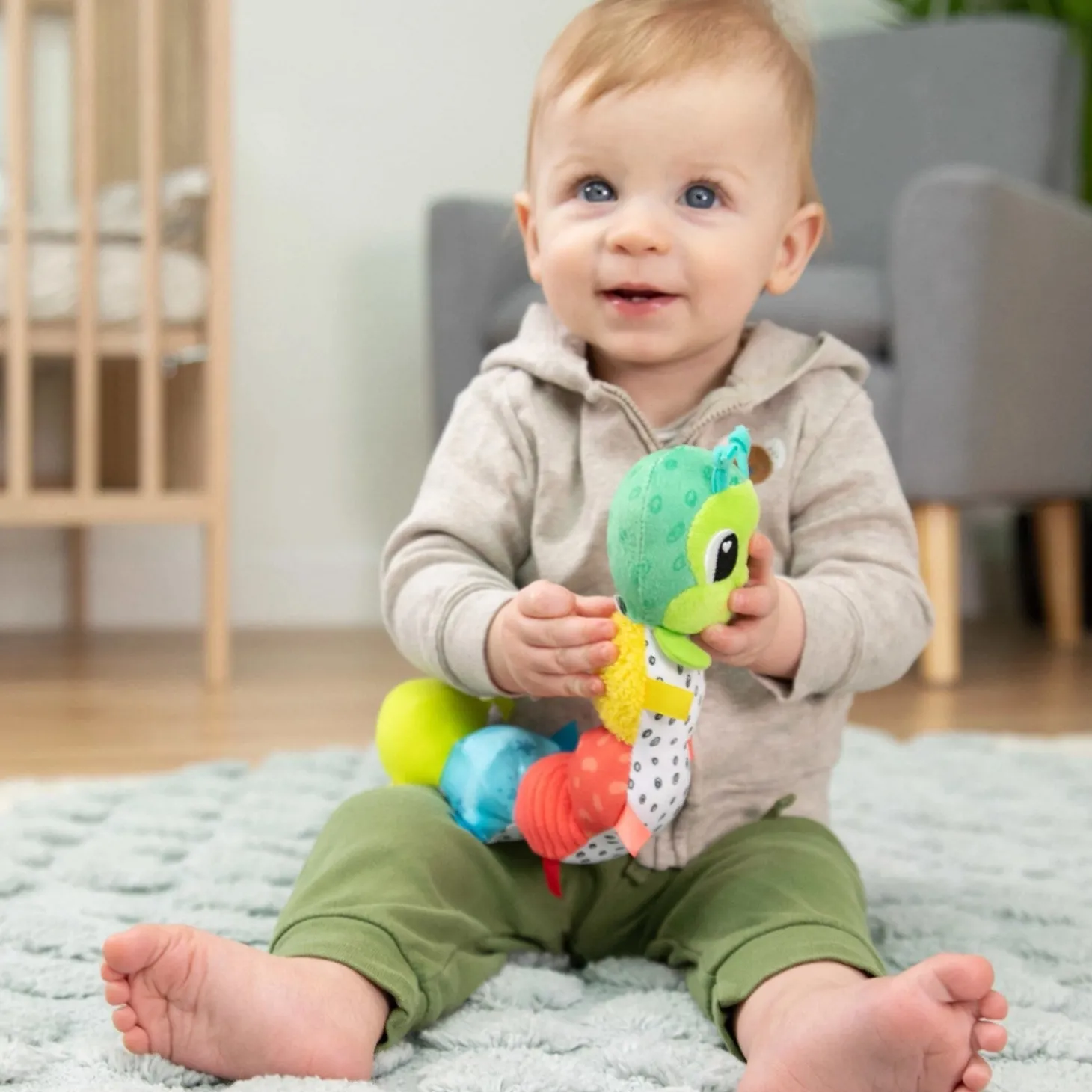 Oplev Lamaze Fidget Larve, det perfekte valg til små opdagelsesrejsende. Denne fascinerende aktivitetslegetøj er designet til at stimulere udviklingen hos børn ved at udfordre dem til at dreje, bøje og forme dens farverige, fleksible krop. Med robuste materialer og en kontrastfyldt sort-hvidt mønster på maven, stimulerer larven synssansen hos spædbørn og tilfredsstiller ældre babyer med bløde, farverige teksturer på ryggen.