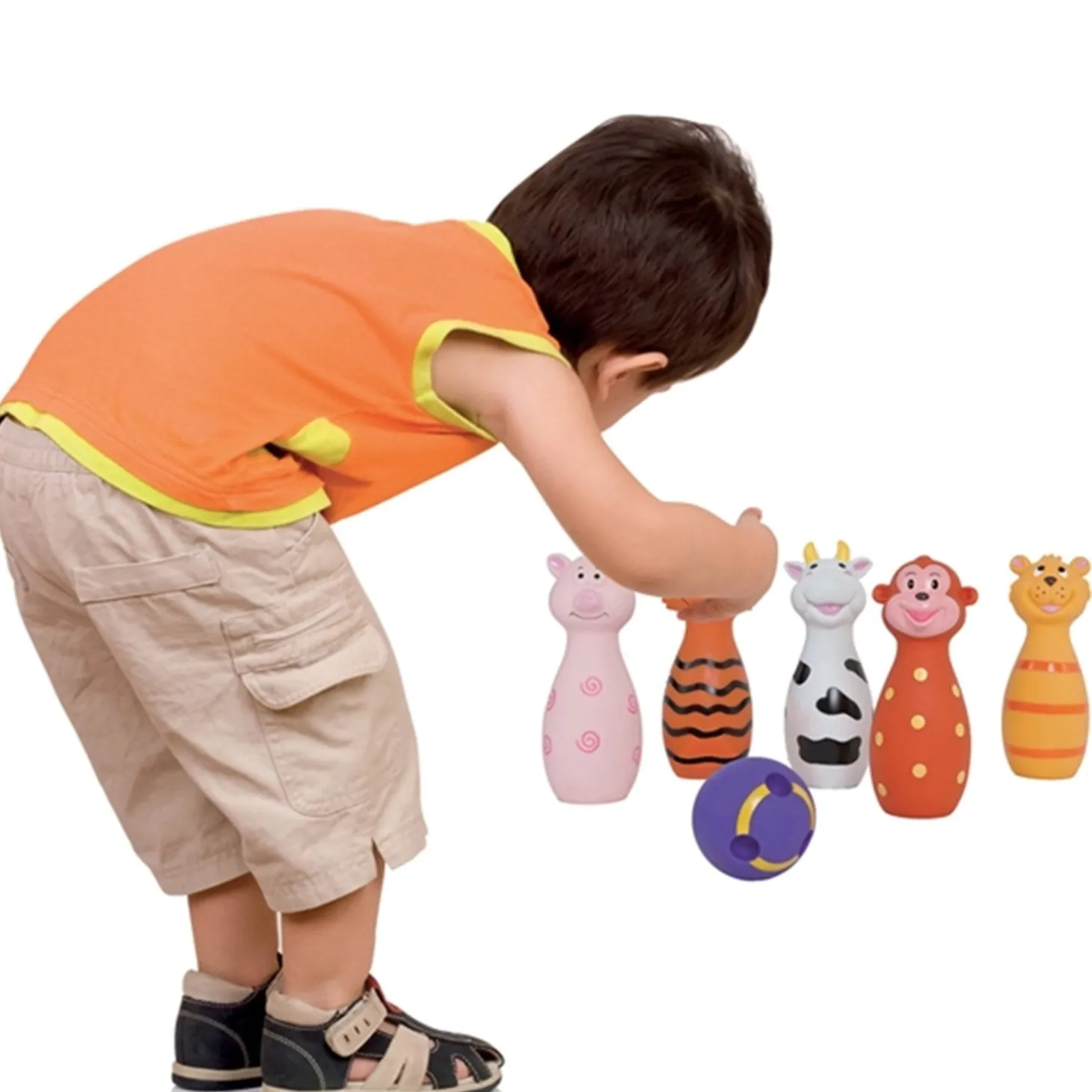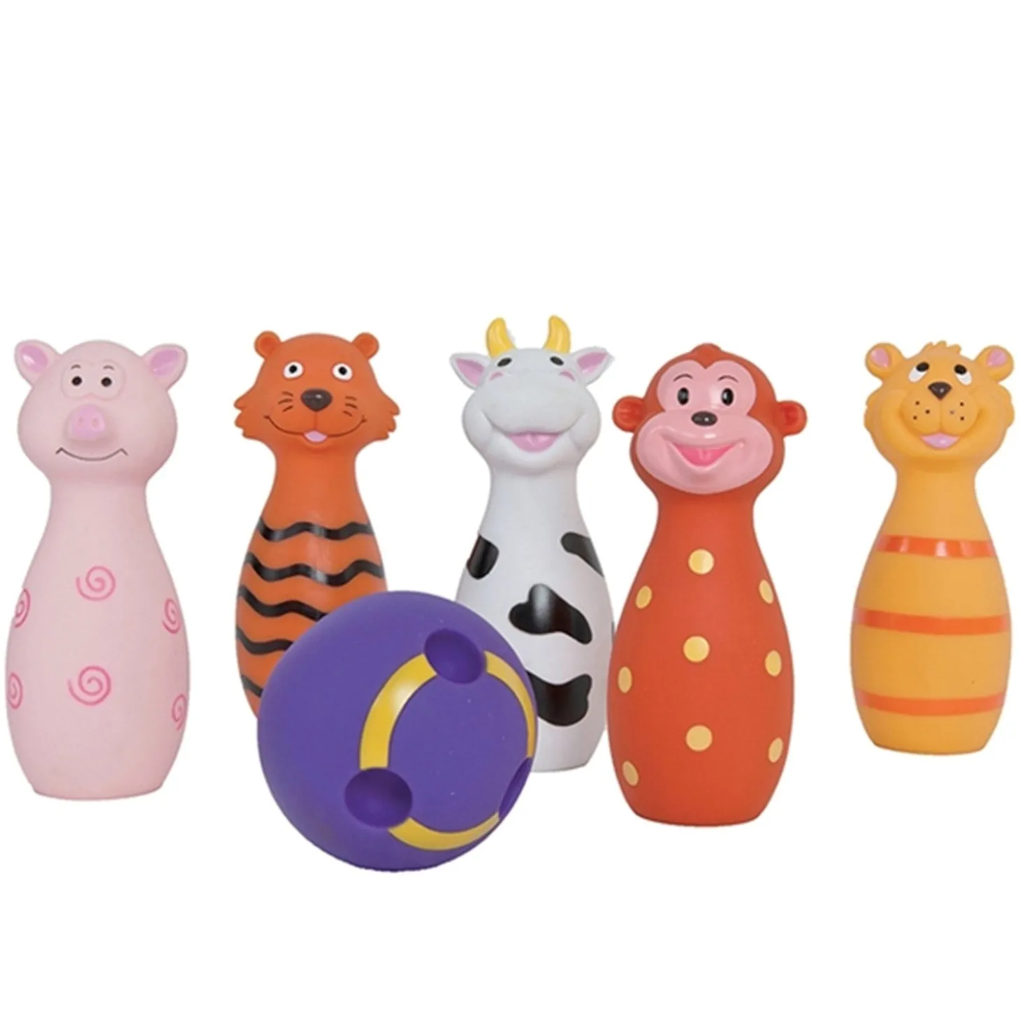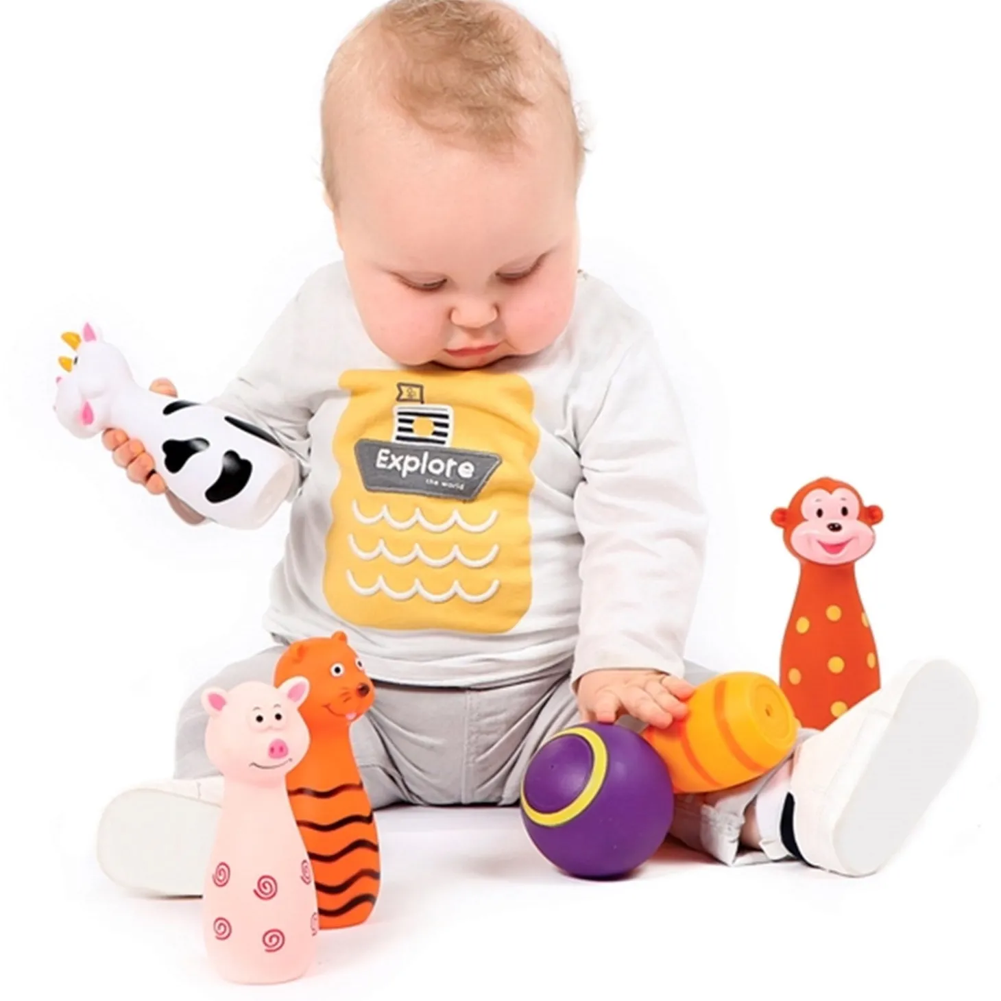 LUDI® Bowlingsættet er det perfekte aktivitetslegetøj til de små. Med kegler formet som sjove dyr, herunder en gris, en tiger, en ko, en abe og en bjørn, vil børnene elske at spille med dette sæt.