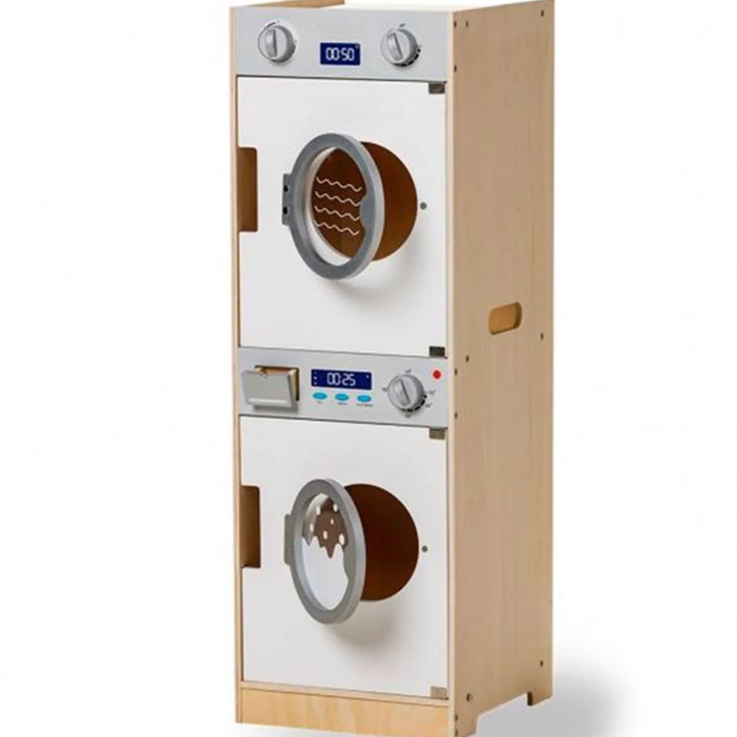 Med MaMaMeMo Vaskesøjlen kan børnene nu lege med at vaske tøj ligesom de voksne. Denne fine vaskesøjle har mange detaljer, herunder en vaskemaskine, en tørretumbler med knapper, en vaskeskuffe og knapper med drejefunktion. Lad børnene hjælpe med vasketøjet på en sjov og fantasifuld måde.