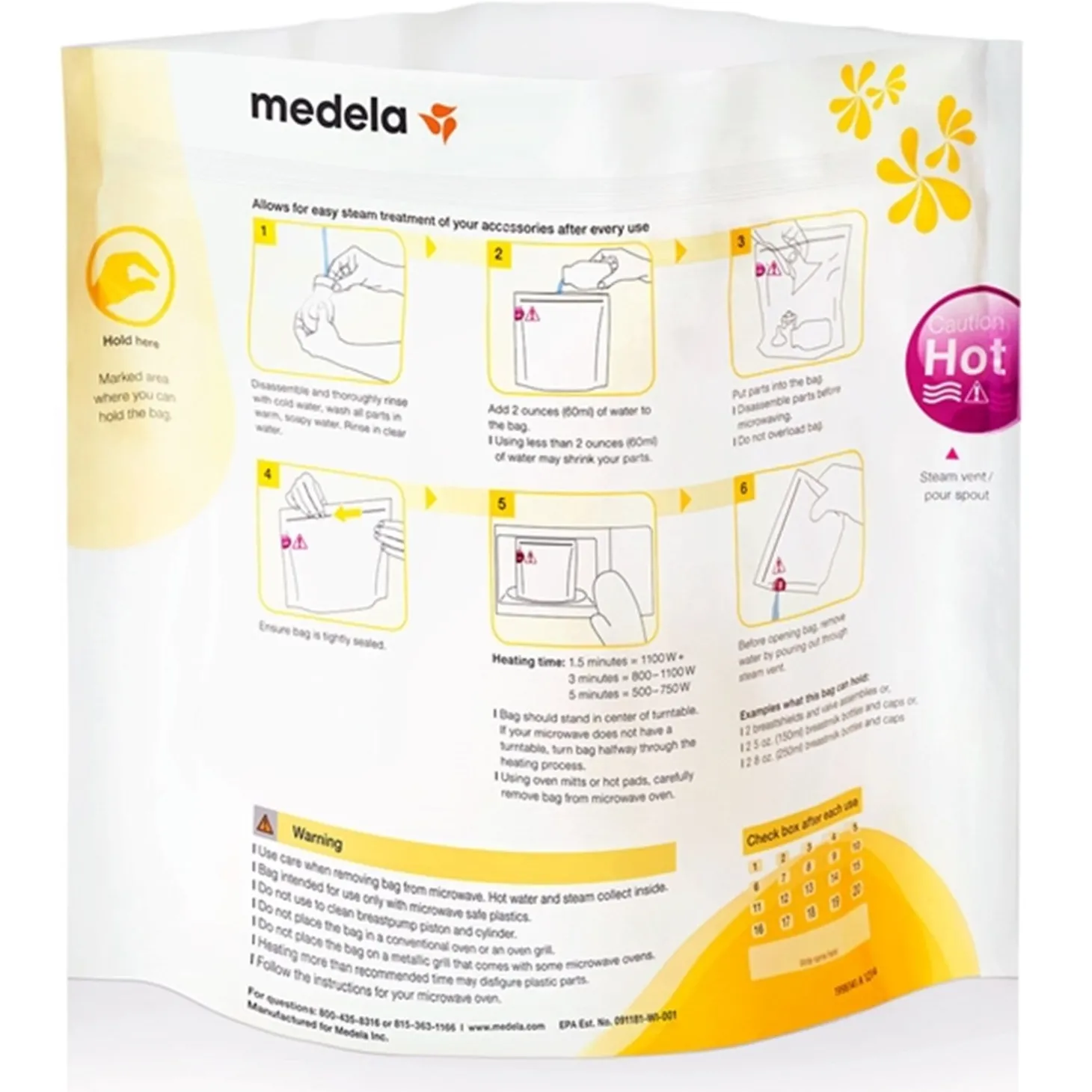 Medela Quick Clean Poser til Mikroovn er den ideelle løsning til nem og sikker sterilisering af brystpumper og tilbehør. Disse certificerede poser tilbyder en sikker og pålidelig dampbehandling, der fjerner 99,9 % af almindelige bakterier og smitstoffer på få minutter.