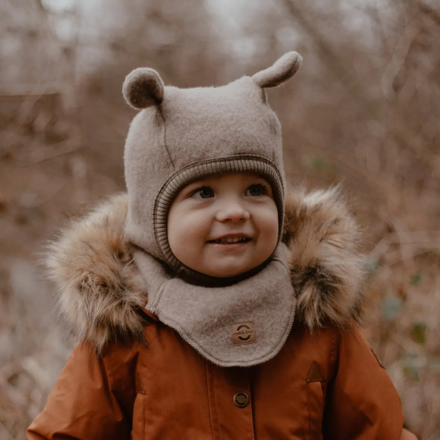 Mikk-line børstet uld elefanthue med ører er en sød og behagelig vinterhue til nyfødte, babyer og tumlinger i størrelser fra 50-104 cm. Elefanthuen er lavet af det fineste og blødeste mulesing-fri merinould, der er ikke kradser. Den dækker det meste af hovedet, halsen og ansigtet, og da den er lavet af uld, er den åndbar og vil bidrage til at barnet bevarer en stabil kropstemperatur. Huen er særligt nyttig til en lur, gåtur eller køretur i det kolde efterår- og vintervejr.